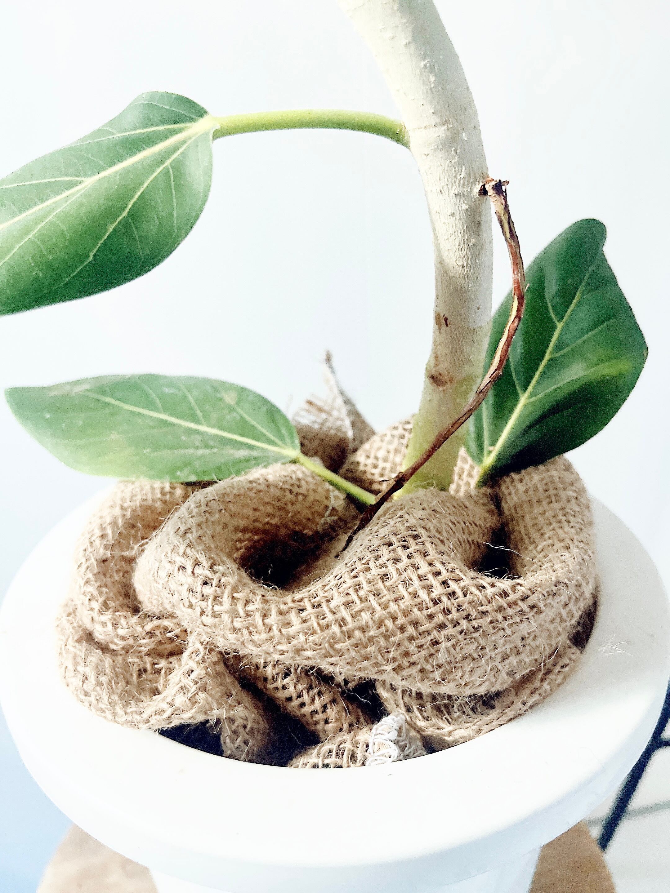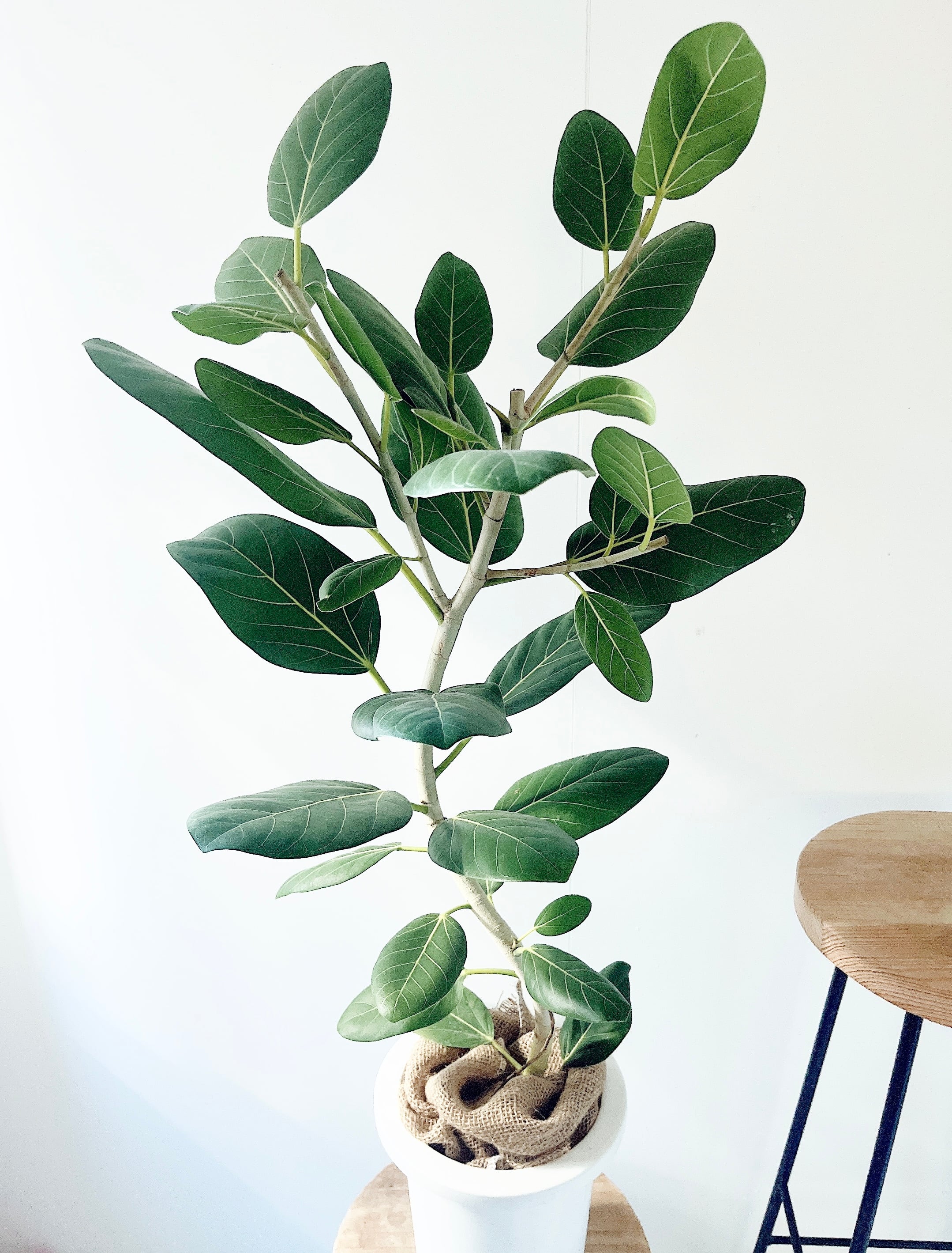 やわらかな曲線を描く幹と、マットな質感の美しい葉が魅力のフィカス・ベンガレンシス(通称ベンガルゴム)の曲がり仕立て。