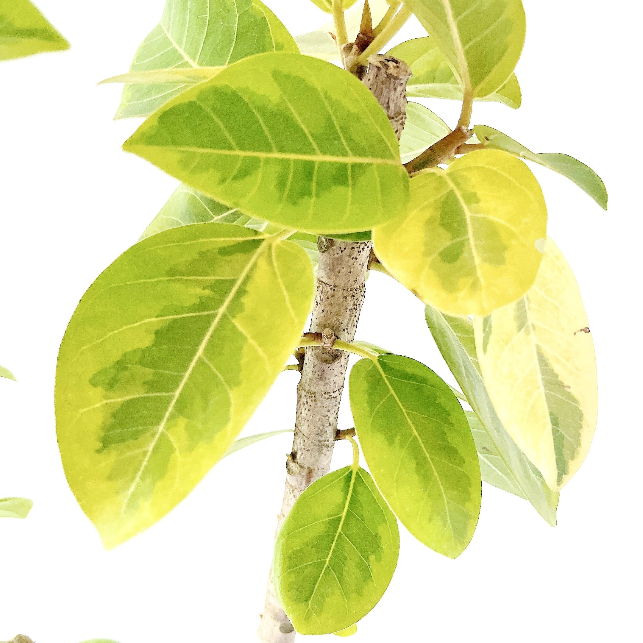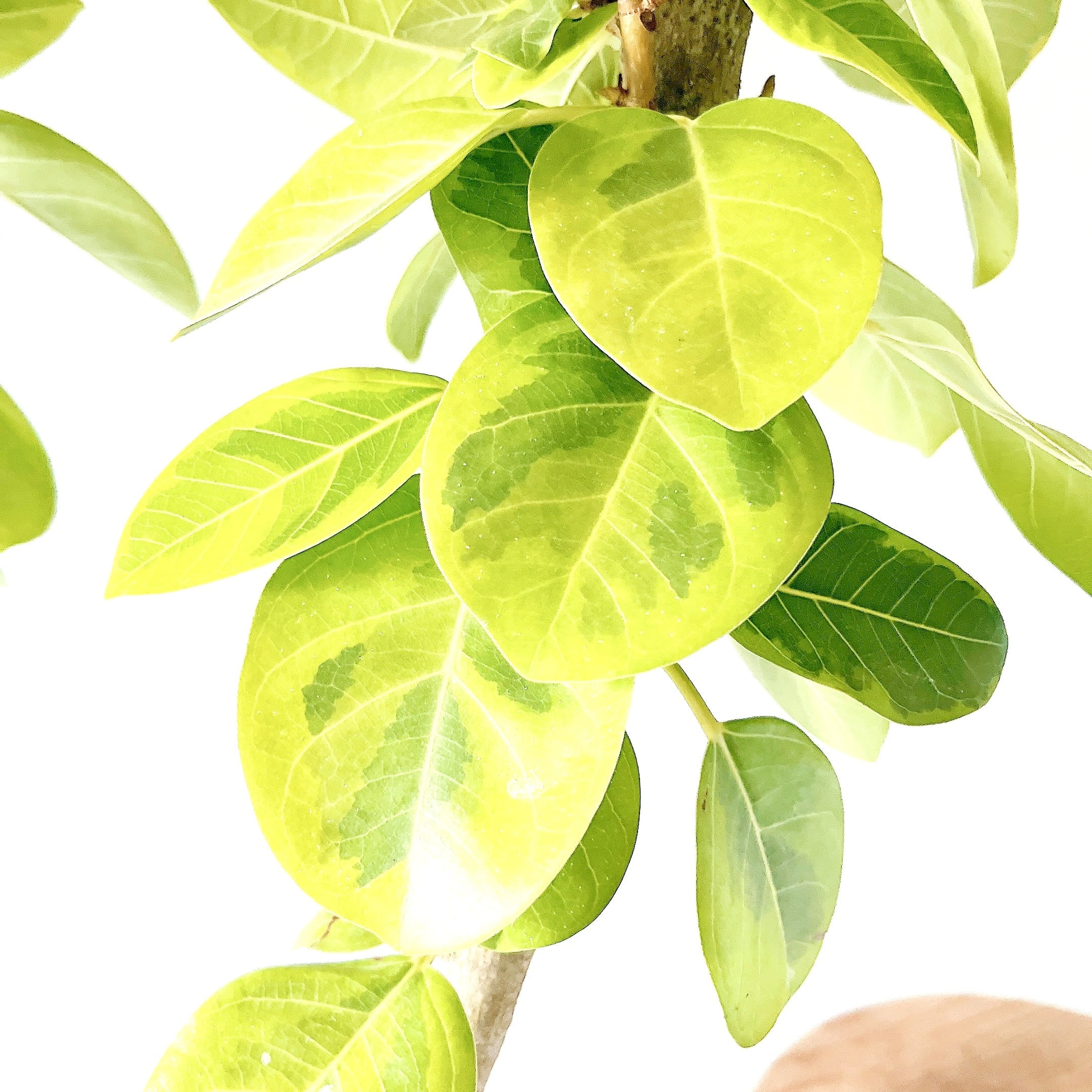 明るいライムグリーンの斑入り葉が美しい、フィカス・アルテシマ。