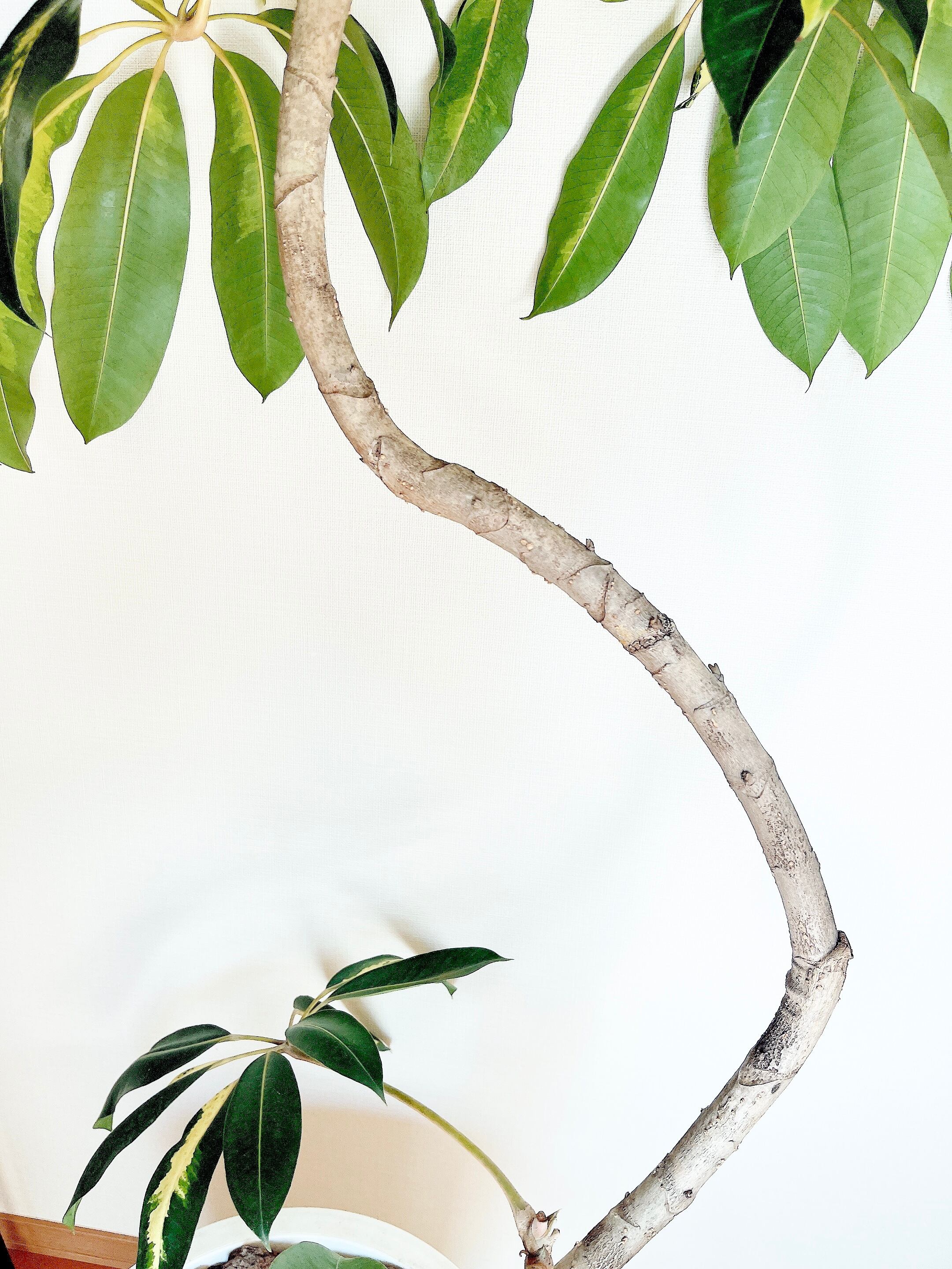 「ゴールデンキング」とも呼ばれる斑入りツピタンサスは、手のひらを広げたような大きな葉が特徴で、枝垂れるように広がる姿から穏やかな癒しを感じられる一鉢です。