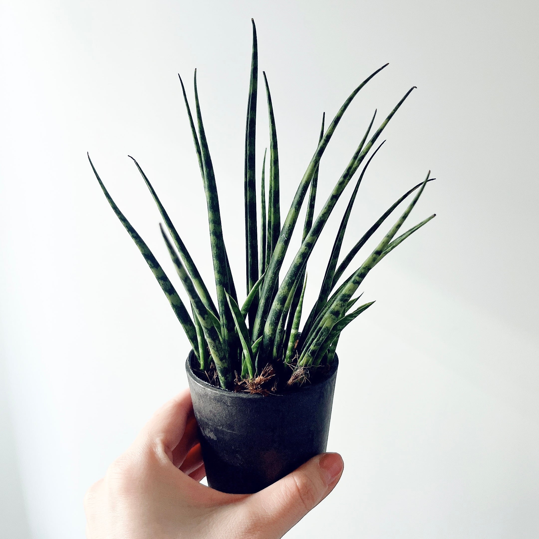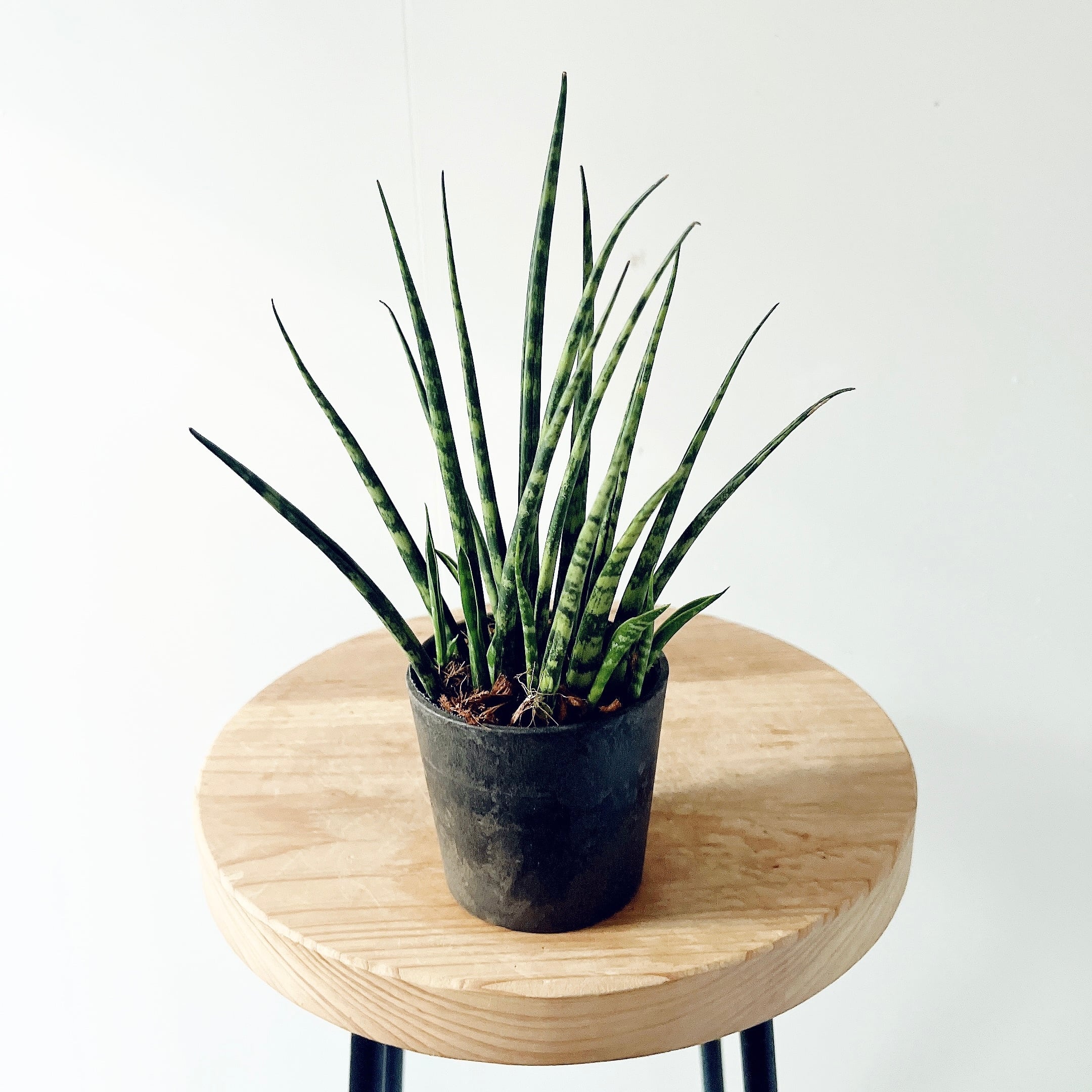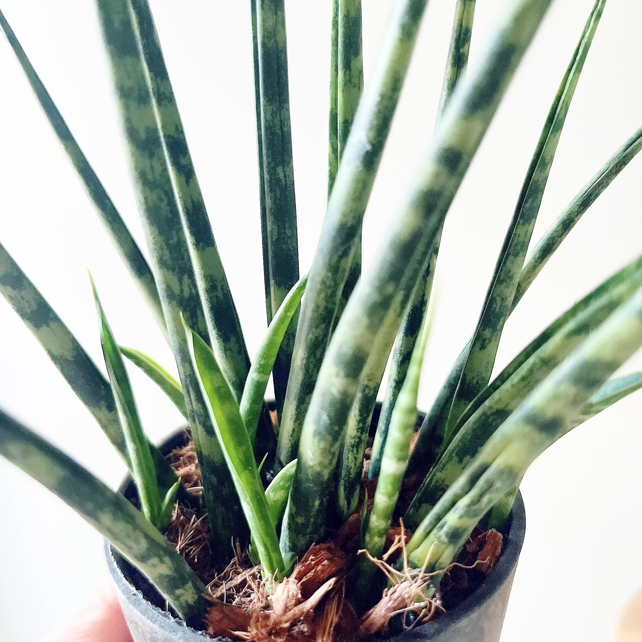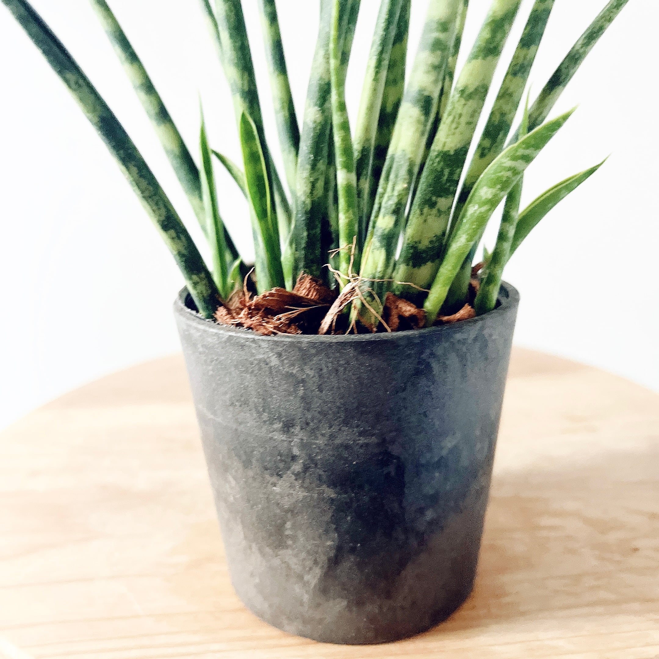 濃緑の葉に縞模様が入った細葉がモダンな佇まいを演出する人気のサンスベリアミカド。