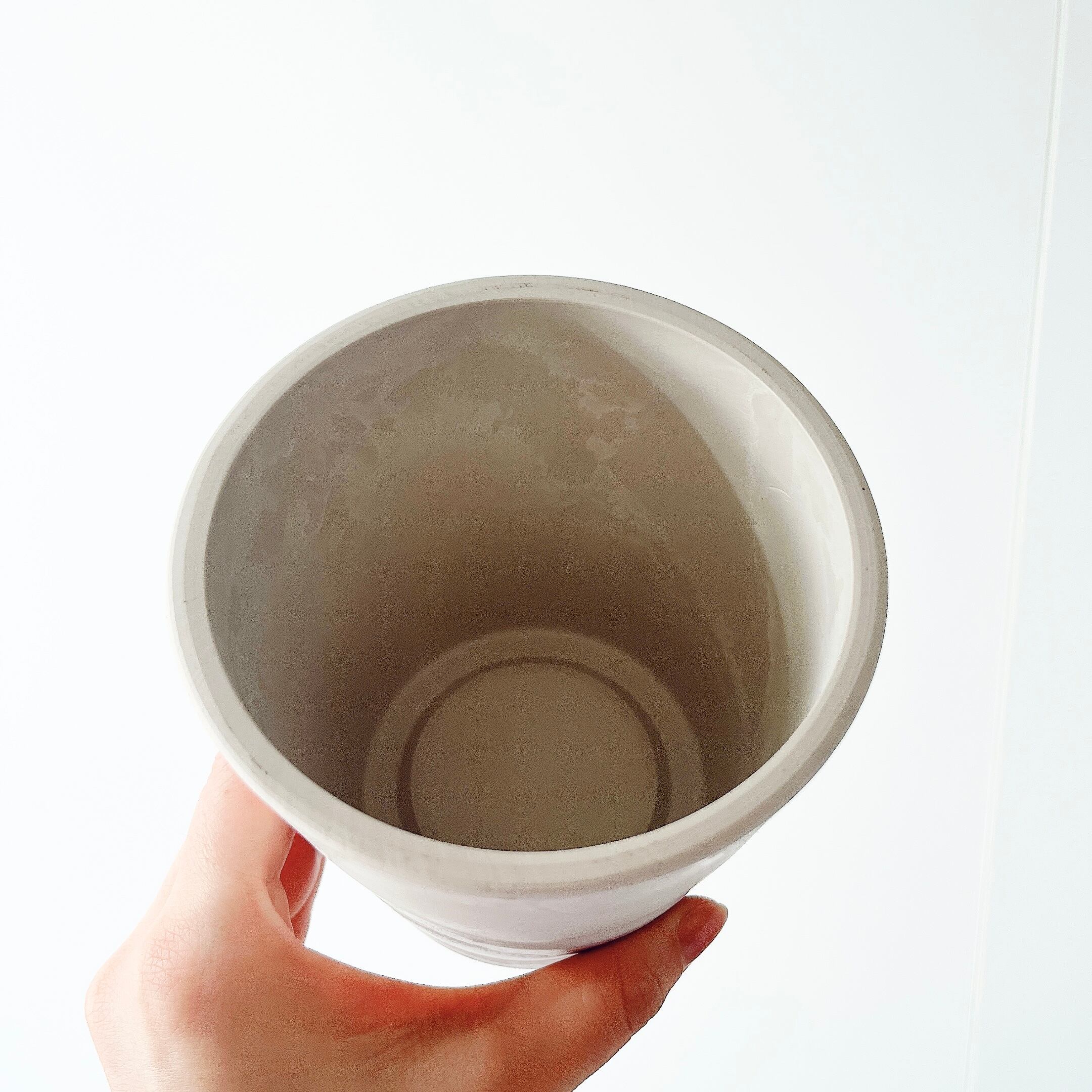リサイクル素材で作られた、陶器のようなやさしい質感の鉢カバーです。