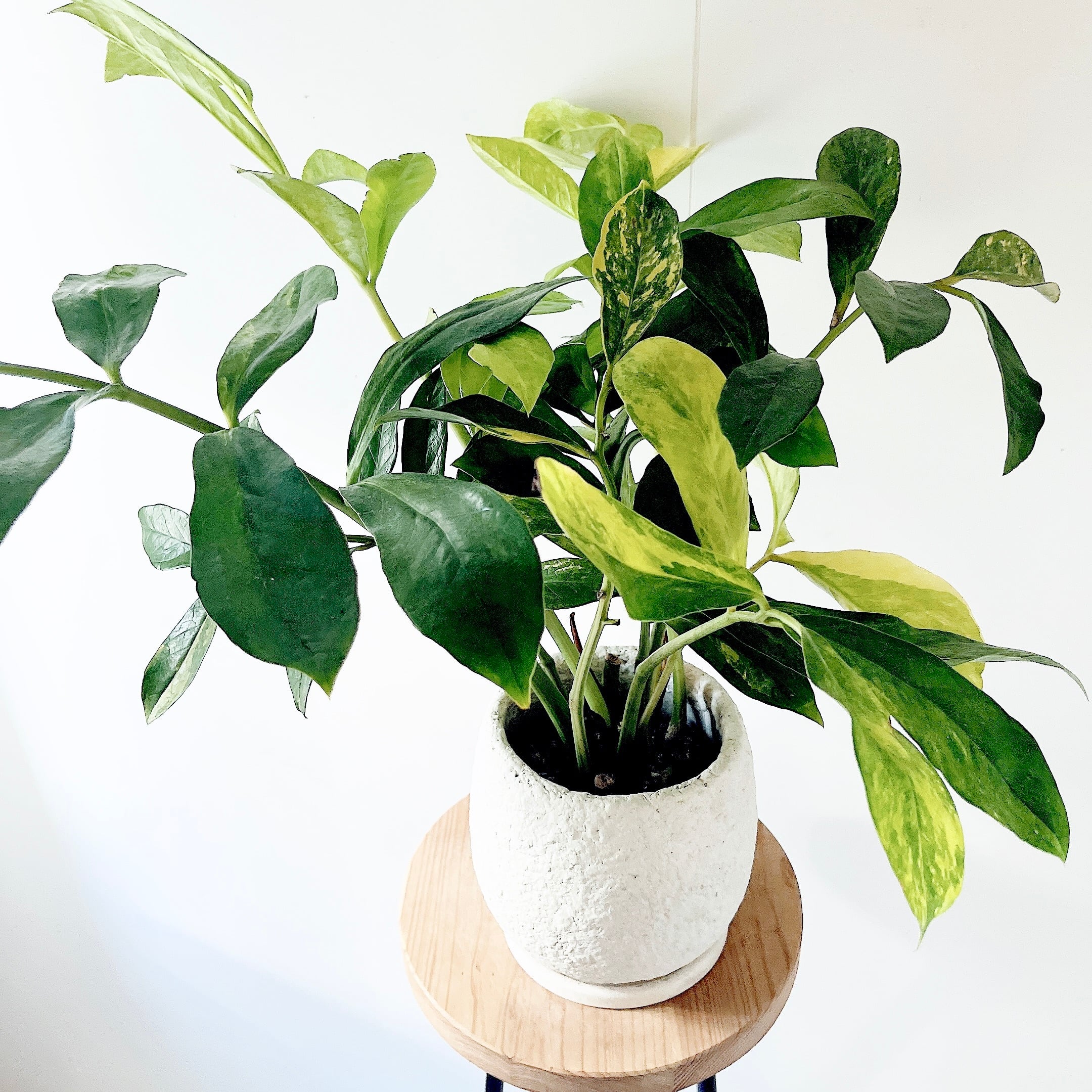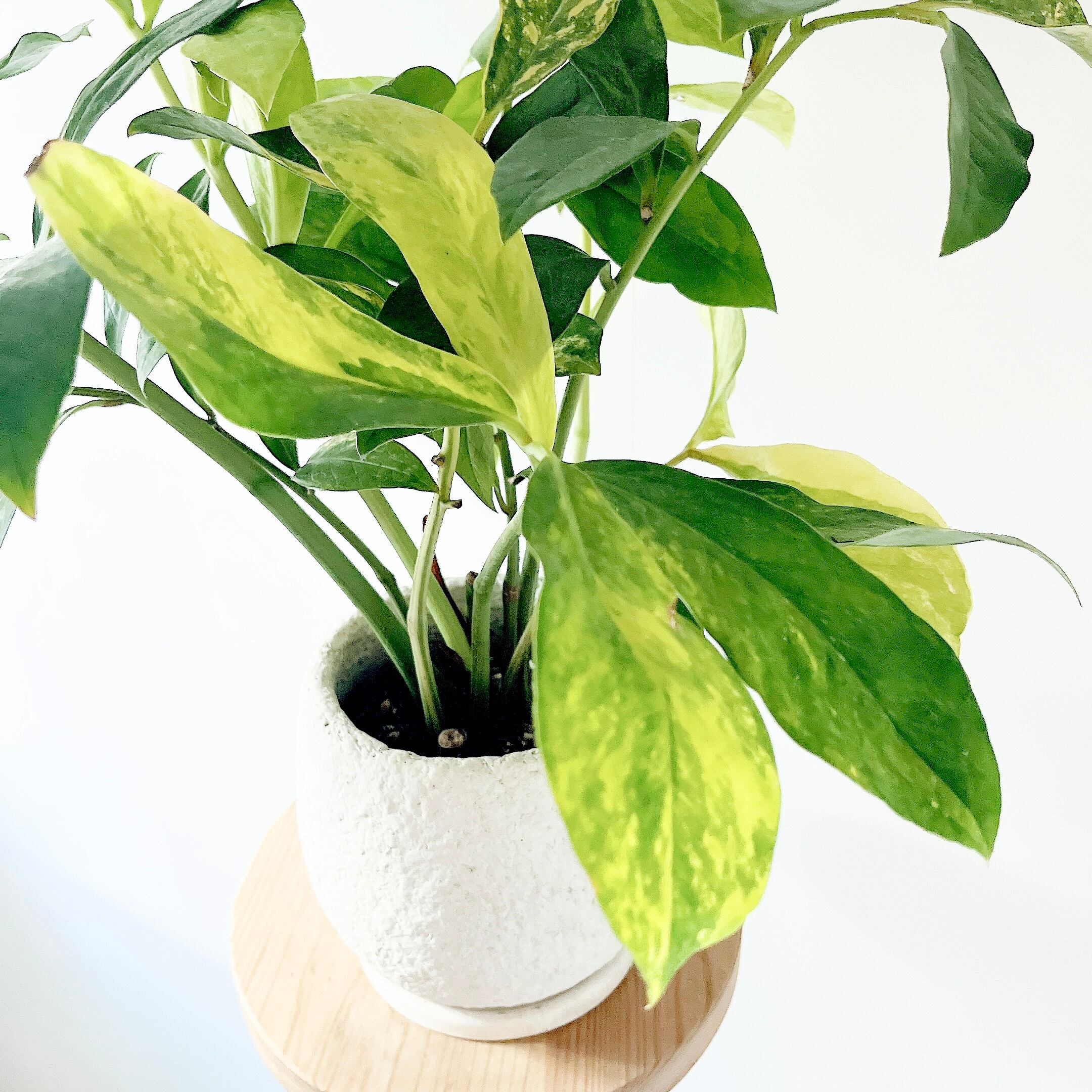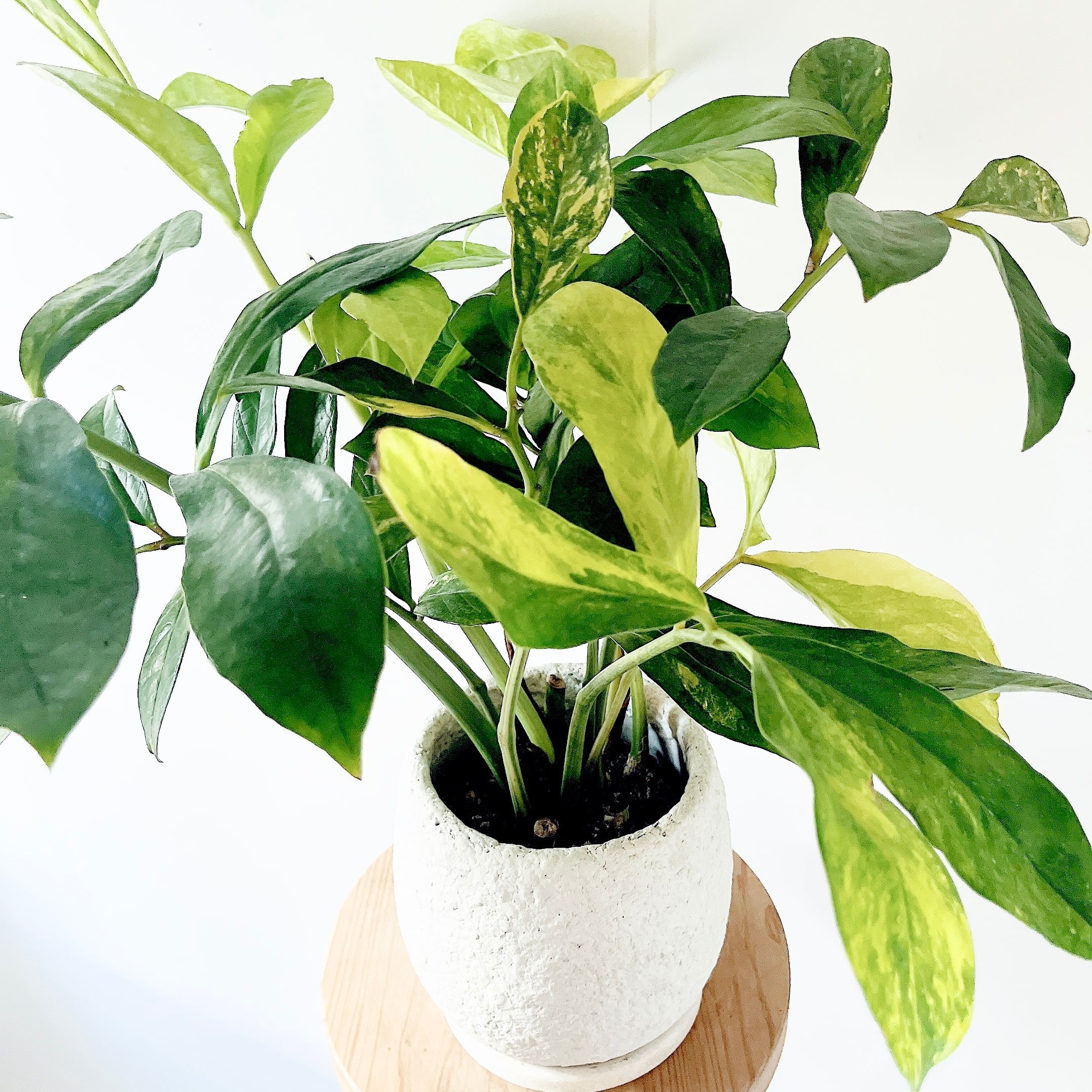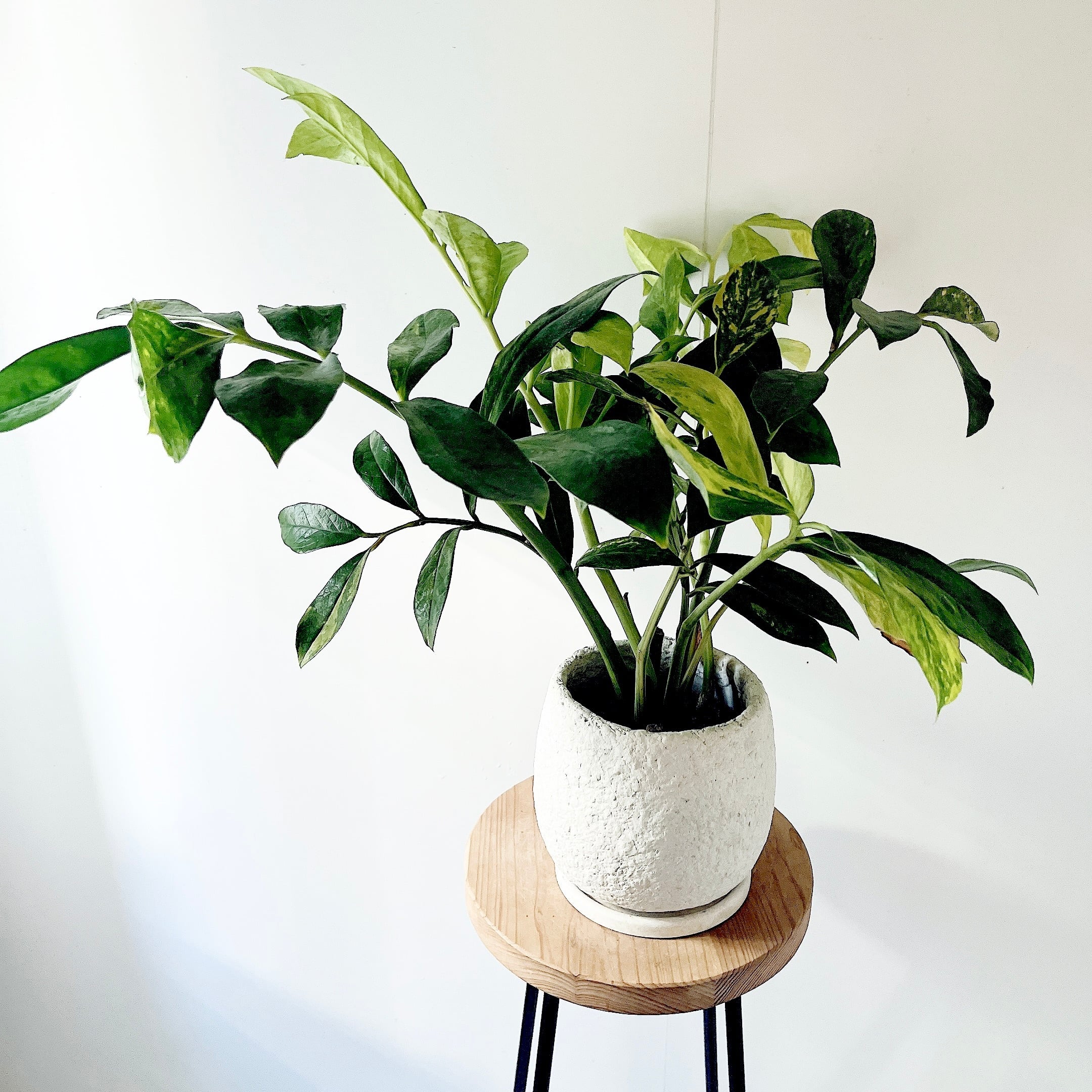 温もりある柔らかい質感のセメント鉢に仕立て、ナチュラルカラーのストーンで丁寧にマルチングしました。