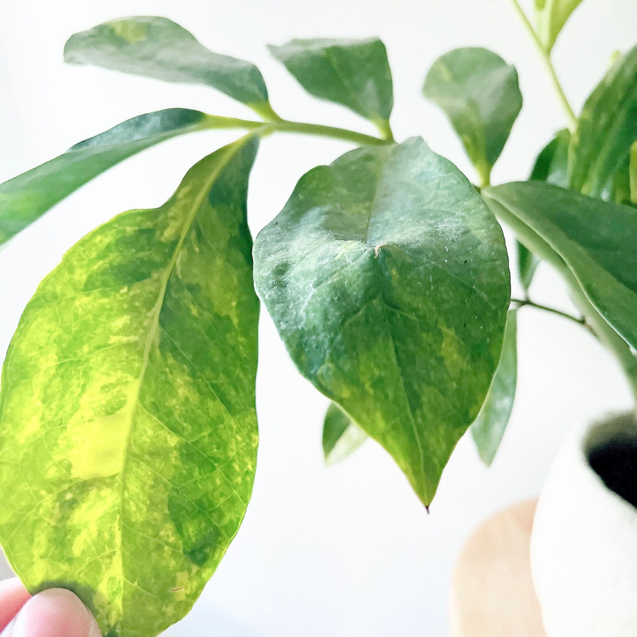 艶やかな葉に入るランダムな斑模様が、光を受けて美しく映えます。