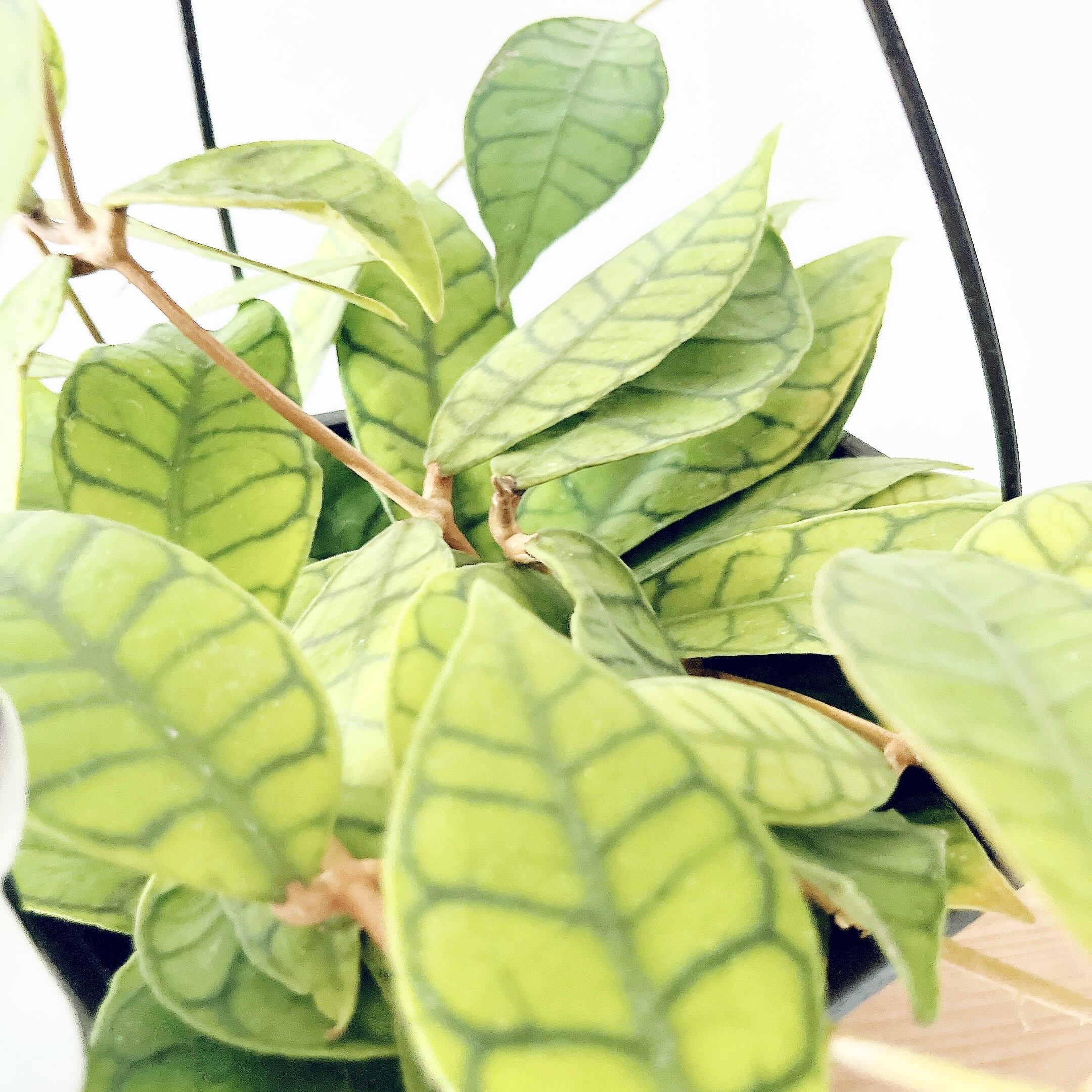 ホヤ・カリストロフィラは、深い緑の葉に力強い濃い葉脈が浮かび上がる、エキゾチックな雰囲気が魅力の希少種。