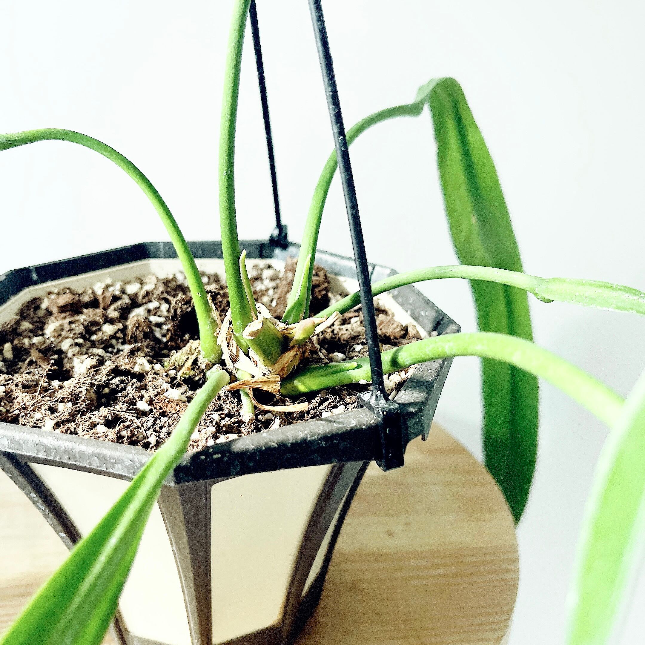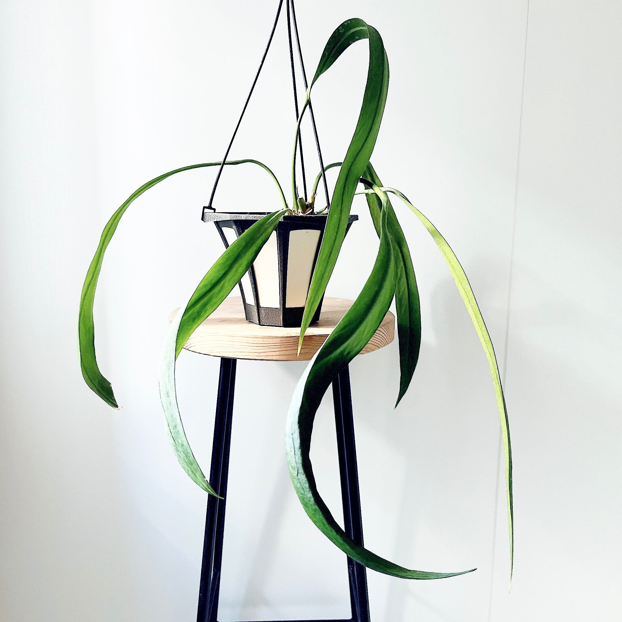 細く長く伸びる葉がゆったりと垂れ下がり、優雅な雰囲気をまとったアンスリウム・ビッタリフォリウム。