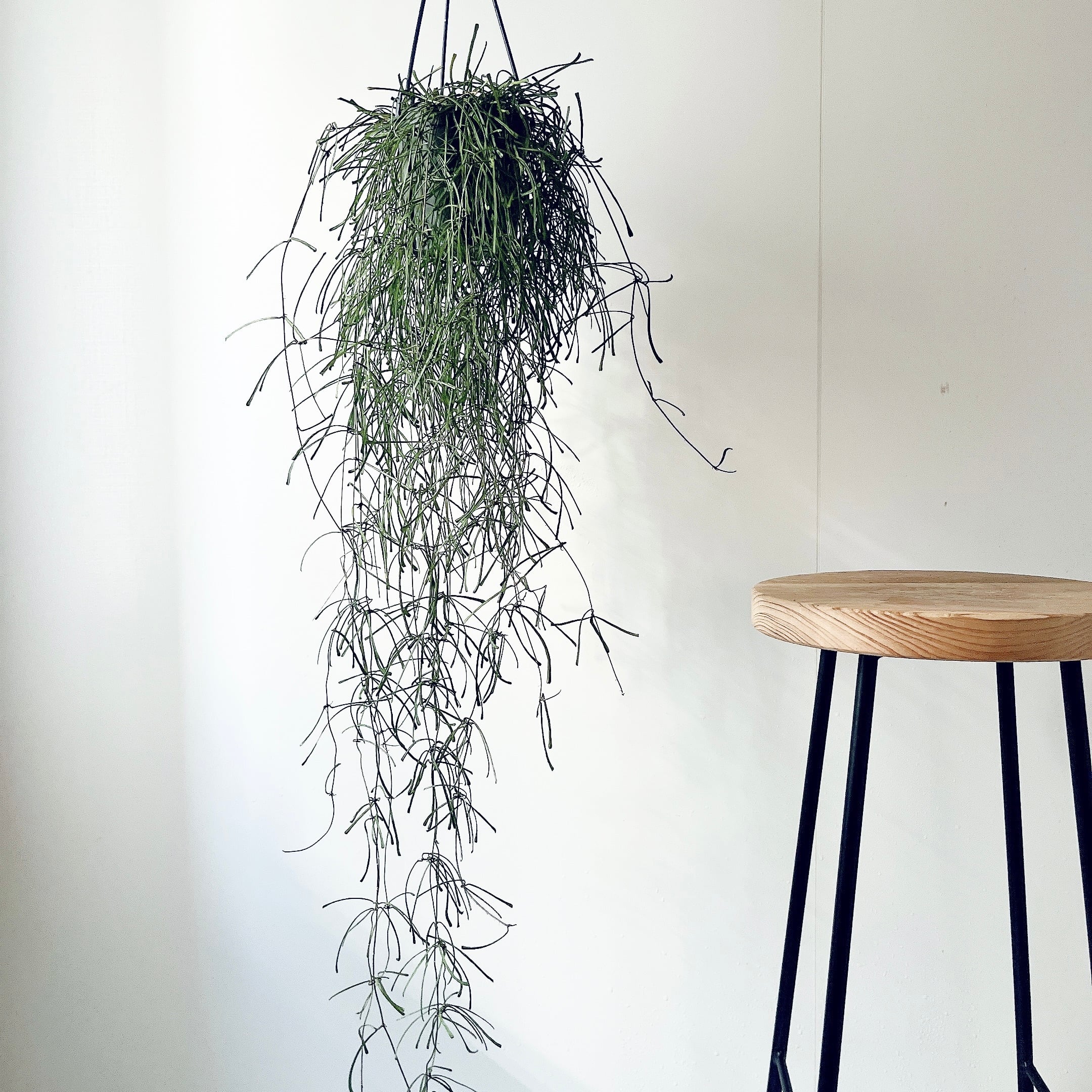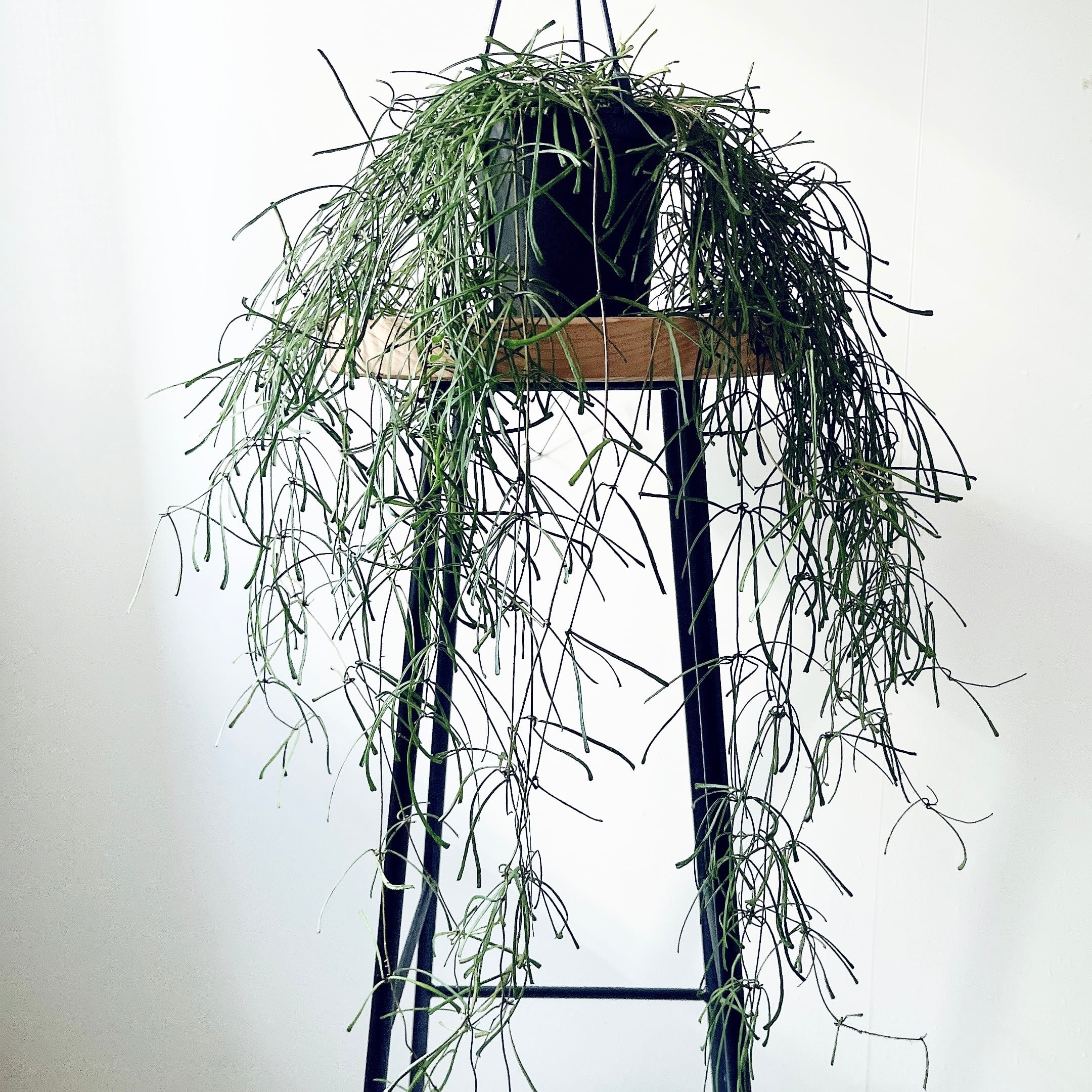 繊細で上品な葉姿が特徴で、吊り鉢や棚の上から垂らして飾るとふんわりとした緑のラインが広がります。