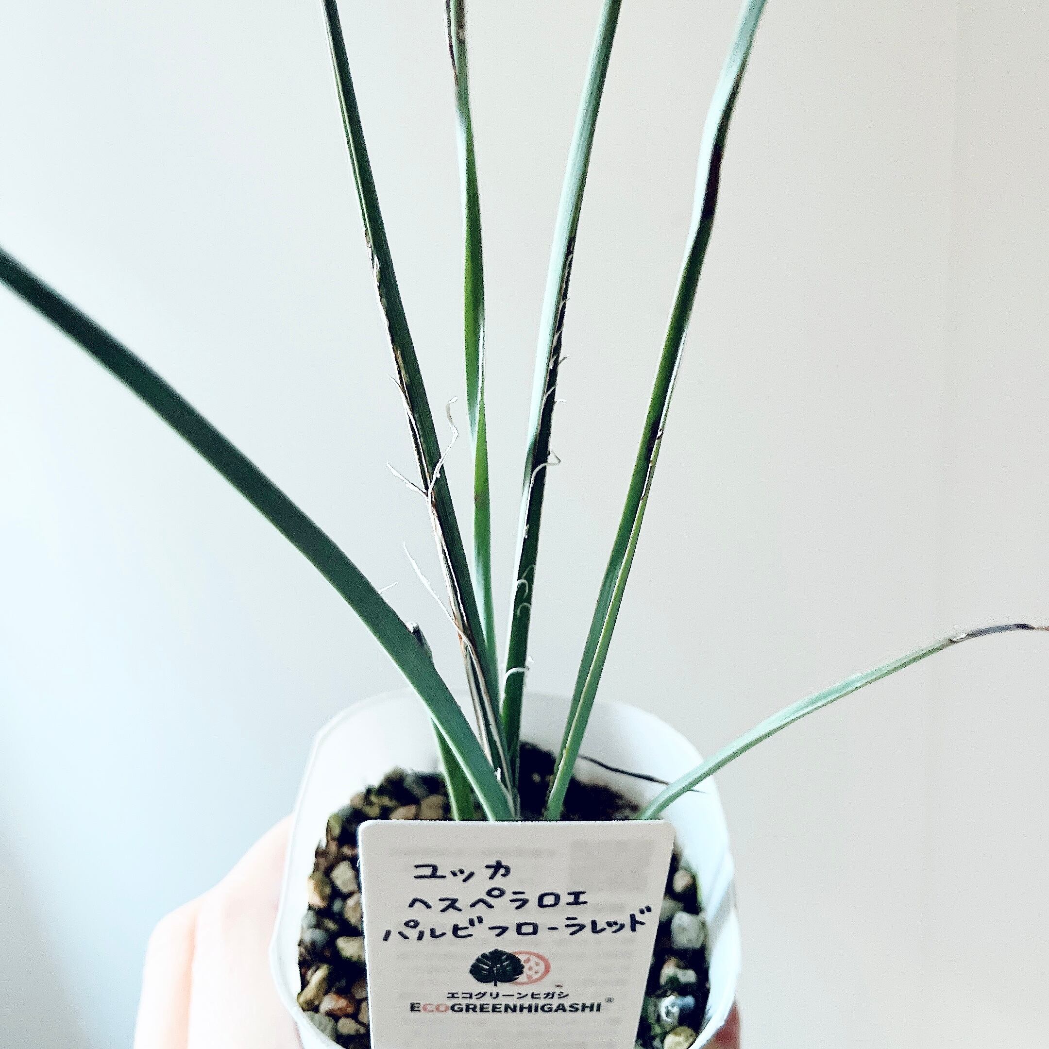 レッド・ユッカとして非常に人気があり、赤みを帯びた花と、くるっとほぐれる葉縁(フィラメント)が特徴です。