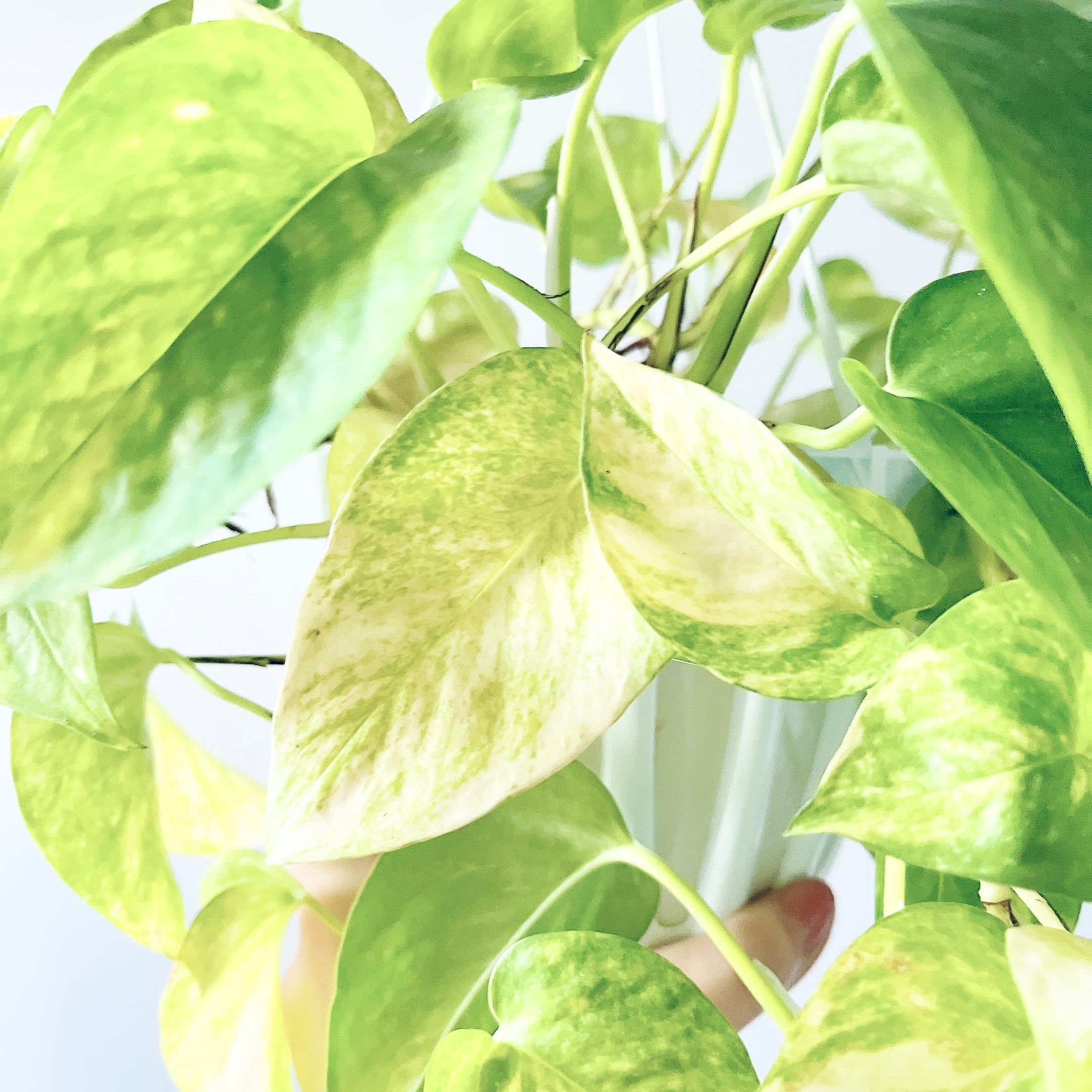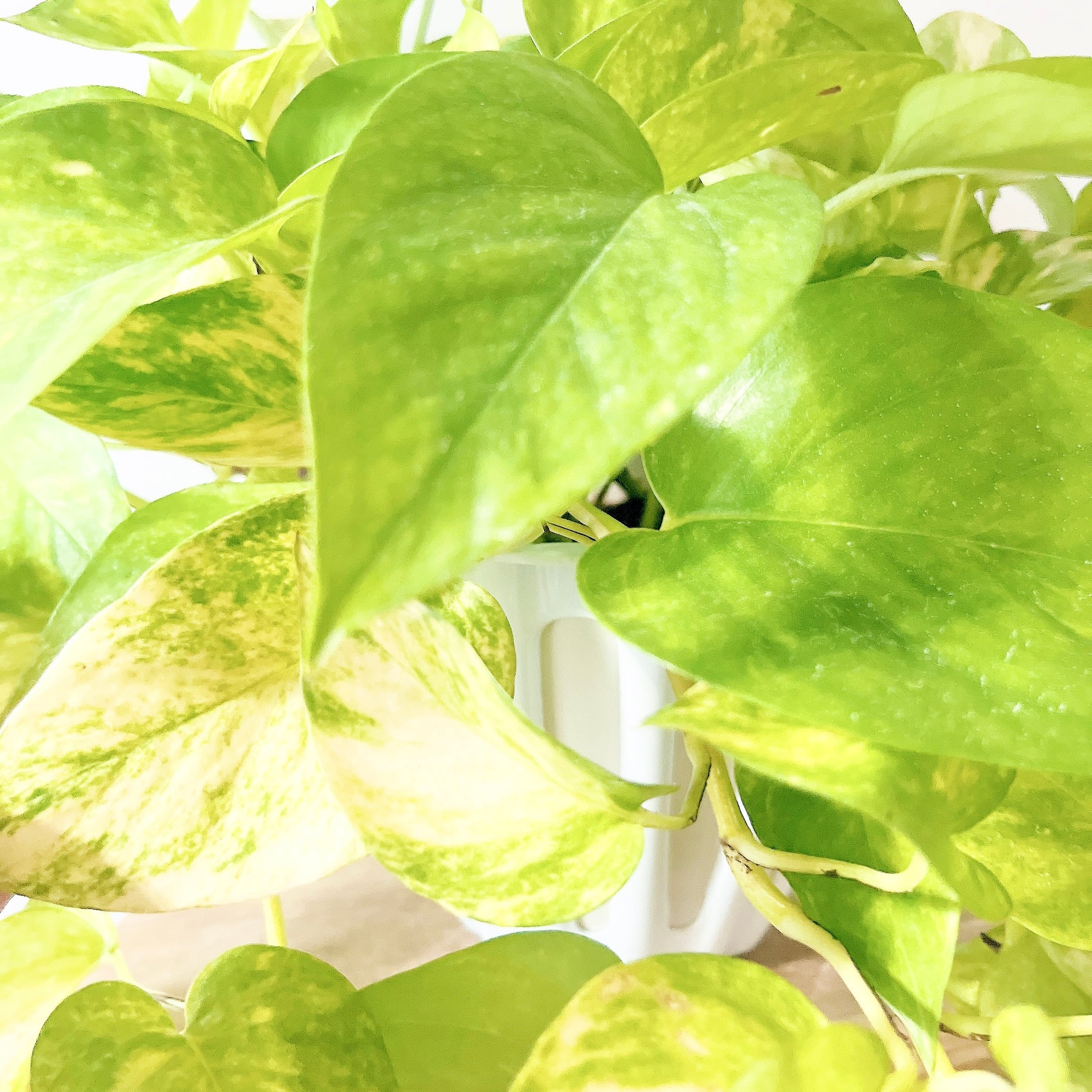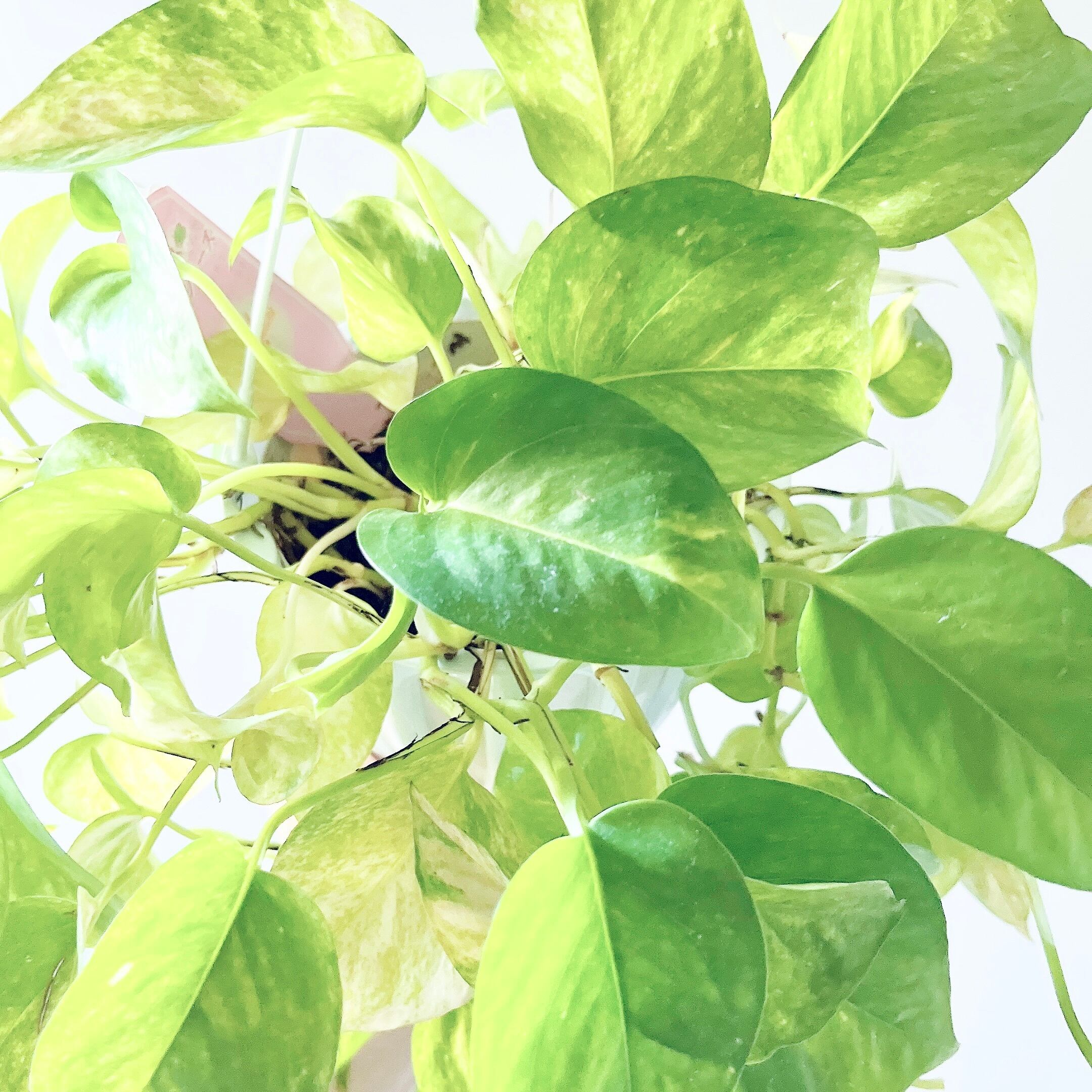 淡く上品なクリームイエロー〜ライムグリーンの斑が、まるで内側から光を放つように眩く美しいポトス。