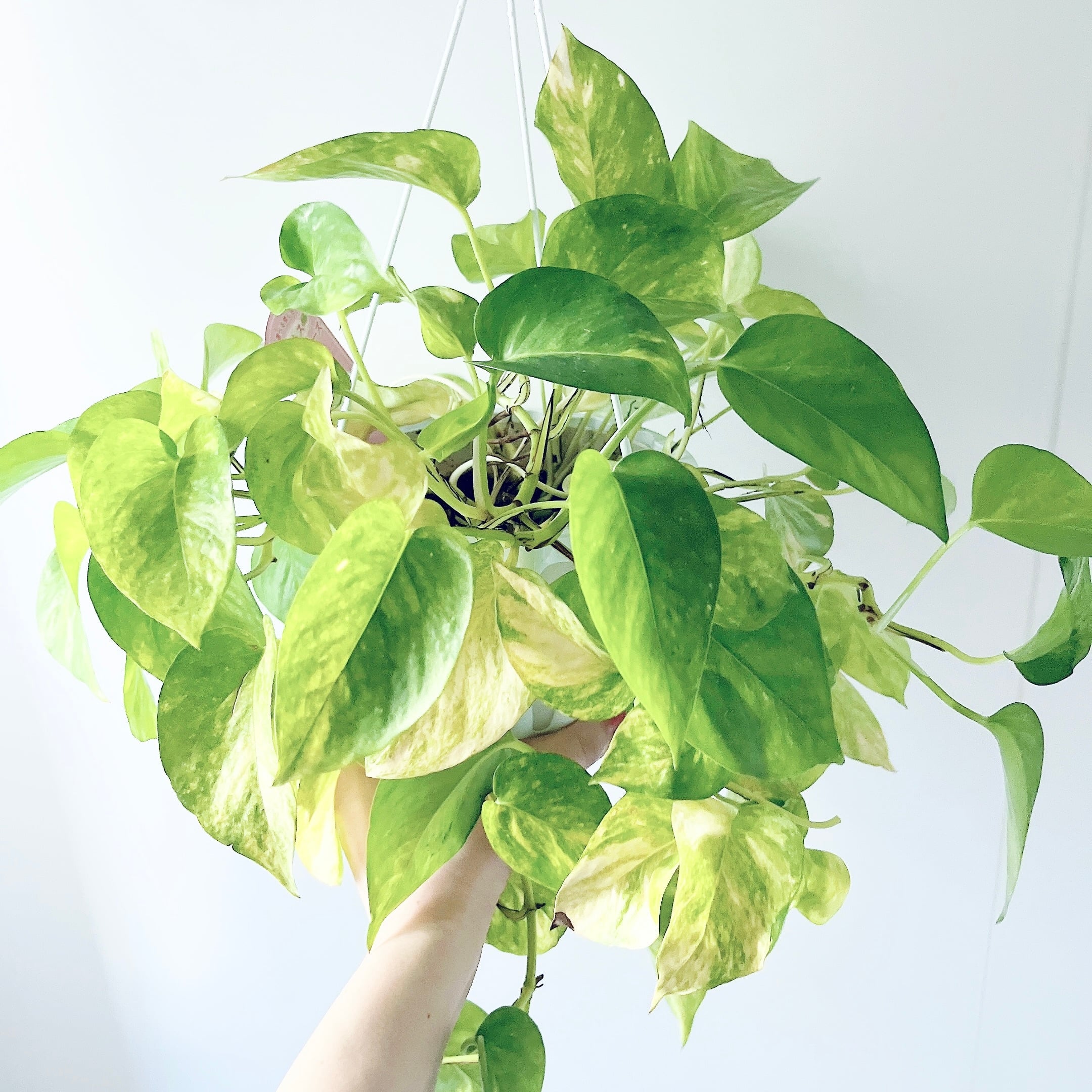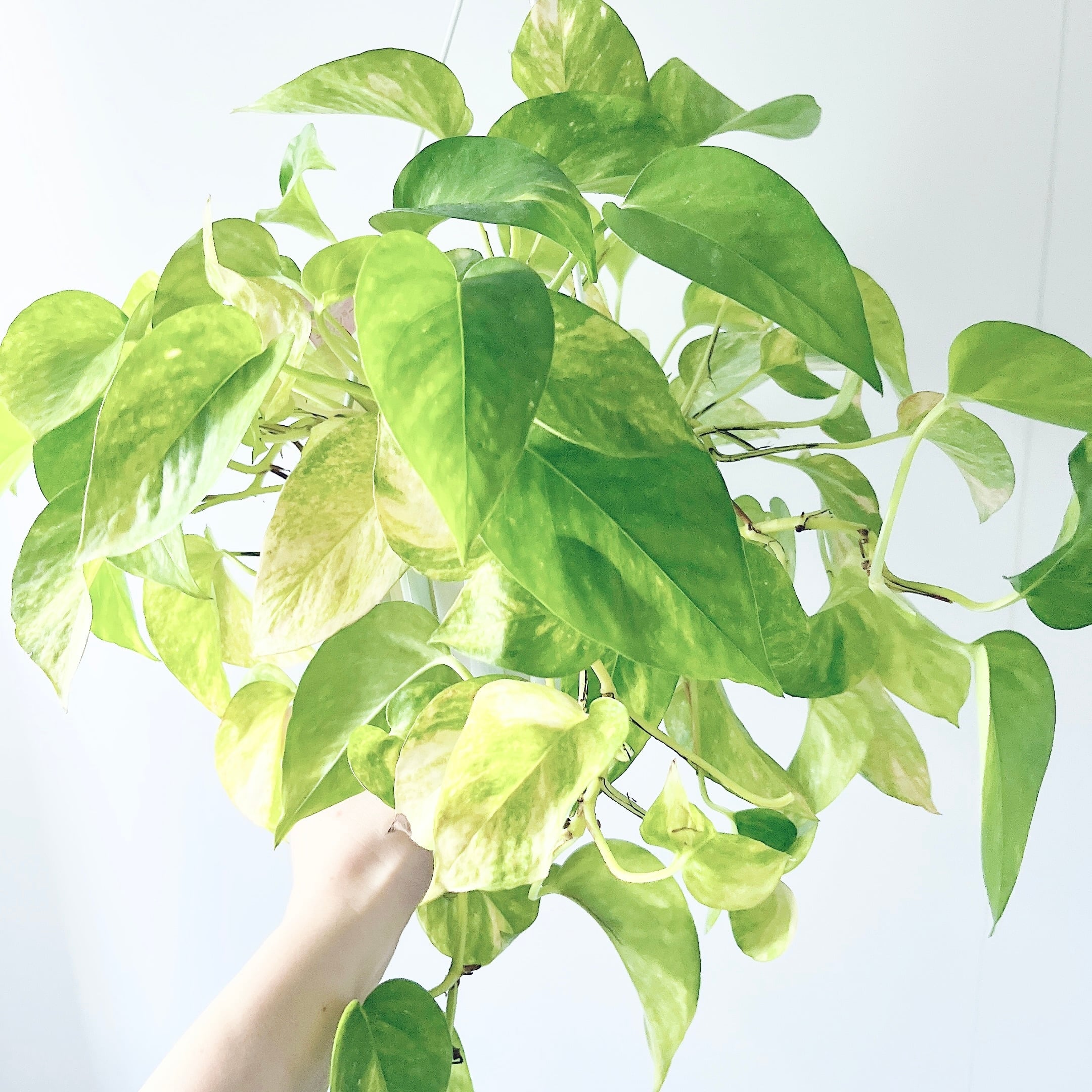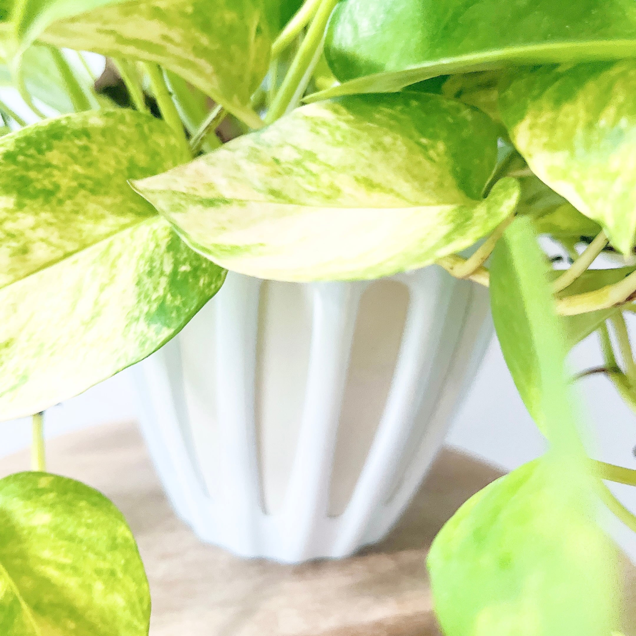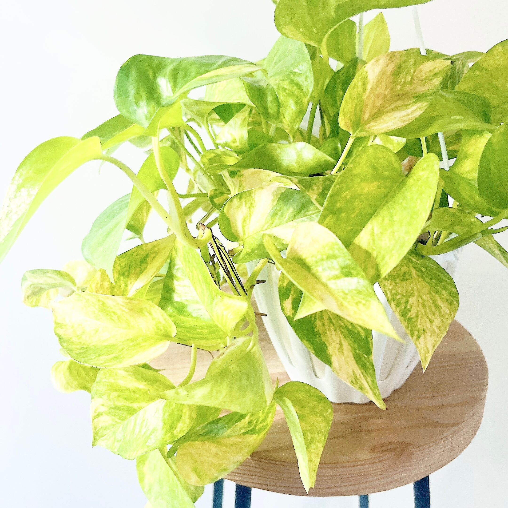 淡く上品なクリームイエロー〜ライムグリーンの斑が、まるで内側から光を放つように眩く美しいポトス。
