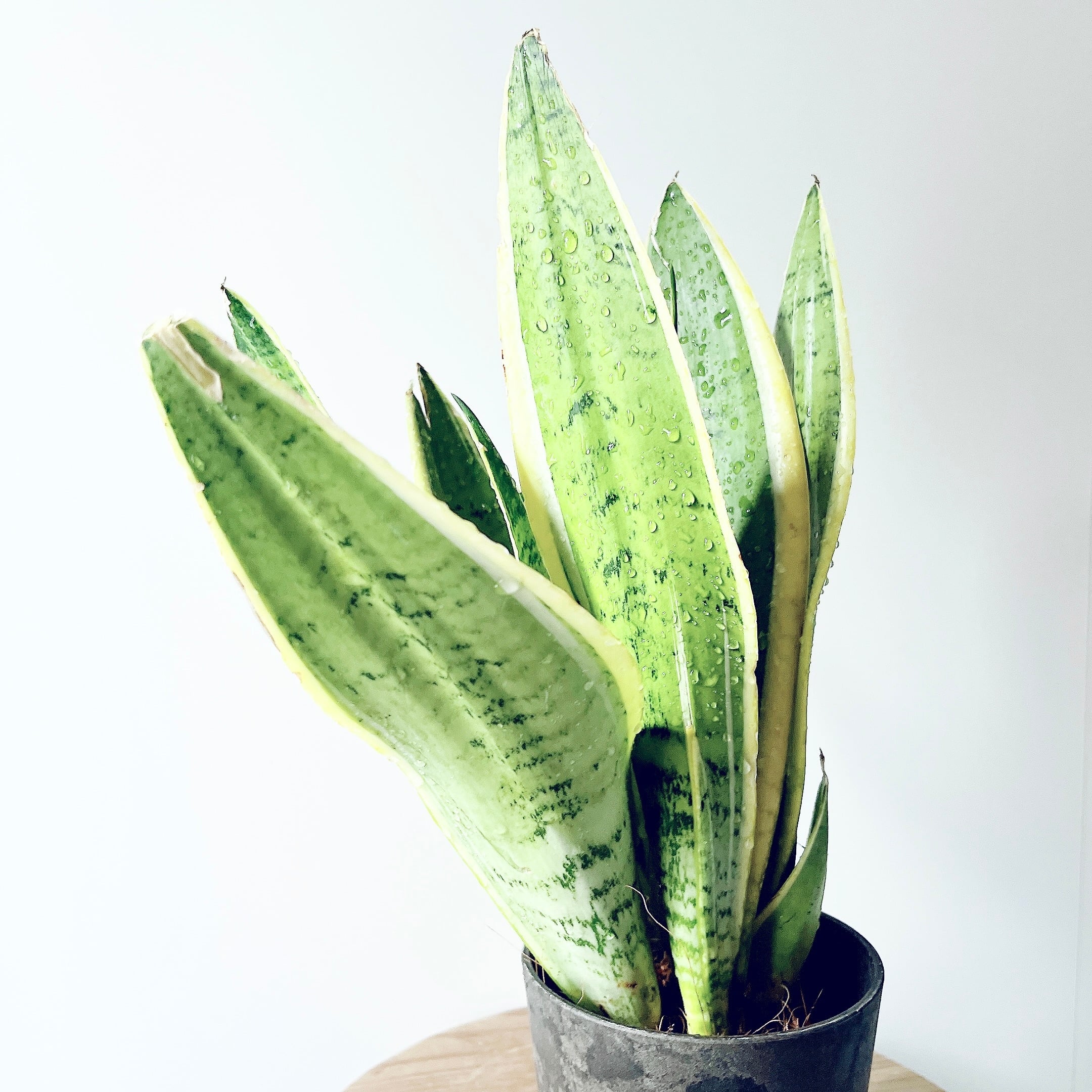 サンスベリアの中でも特に斑の入り方が繊細で、インテリアグリーンとして目を惹きます。