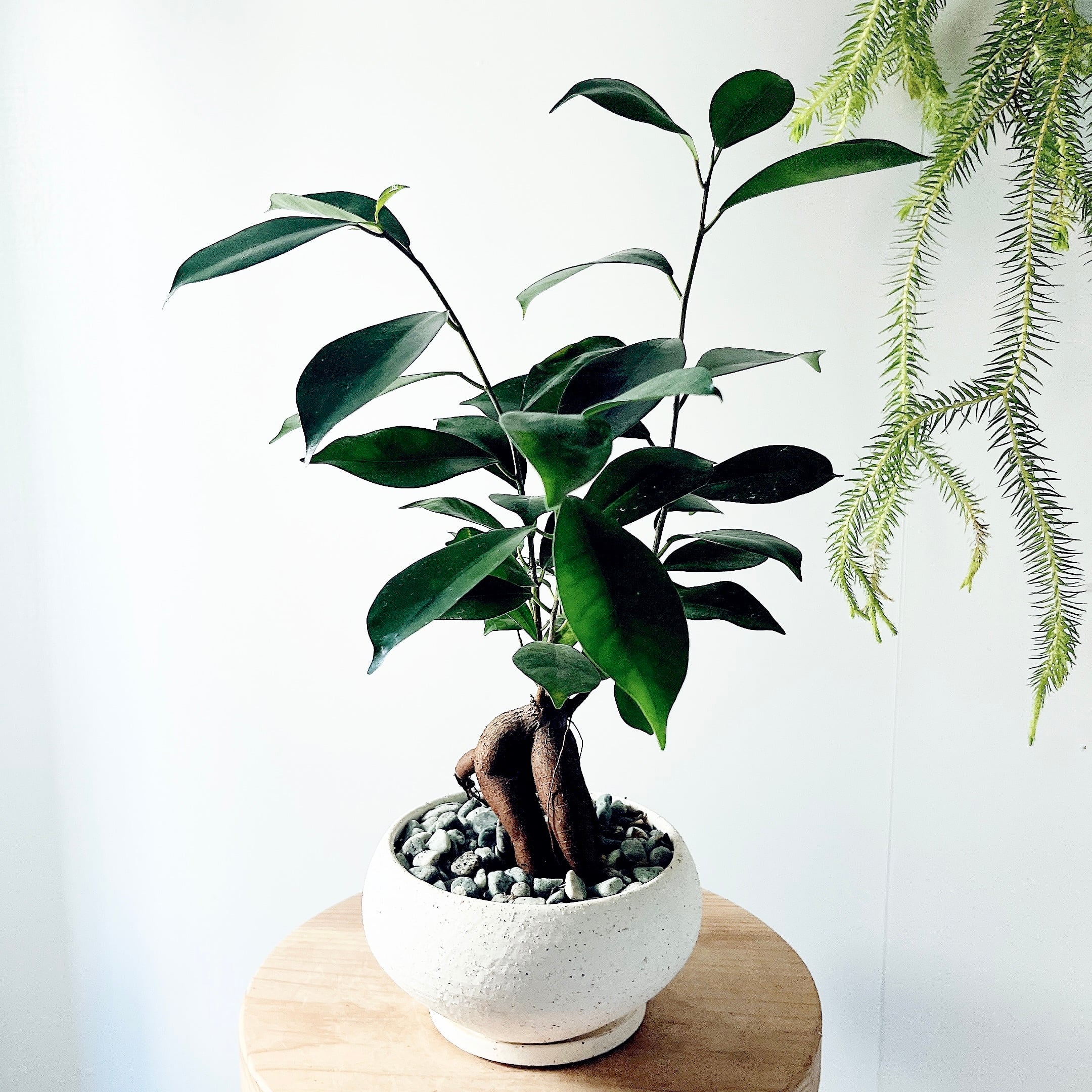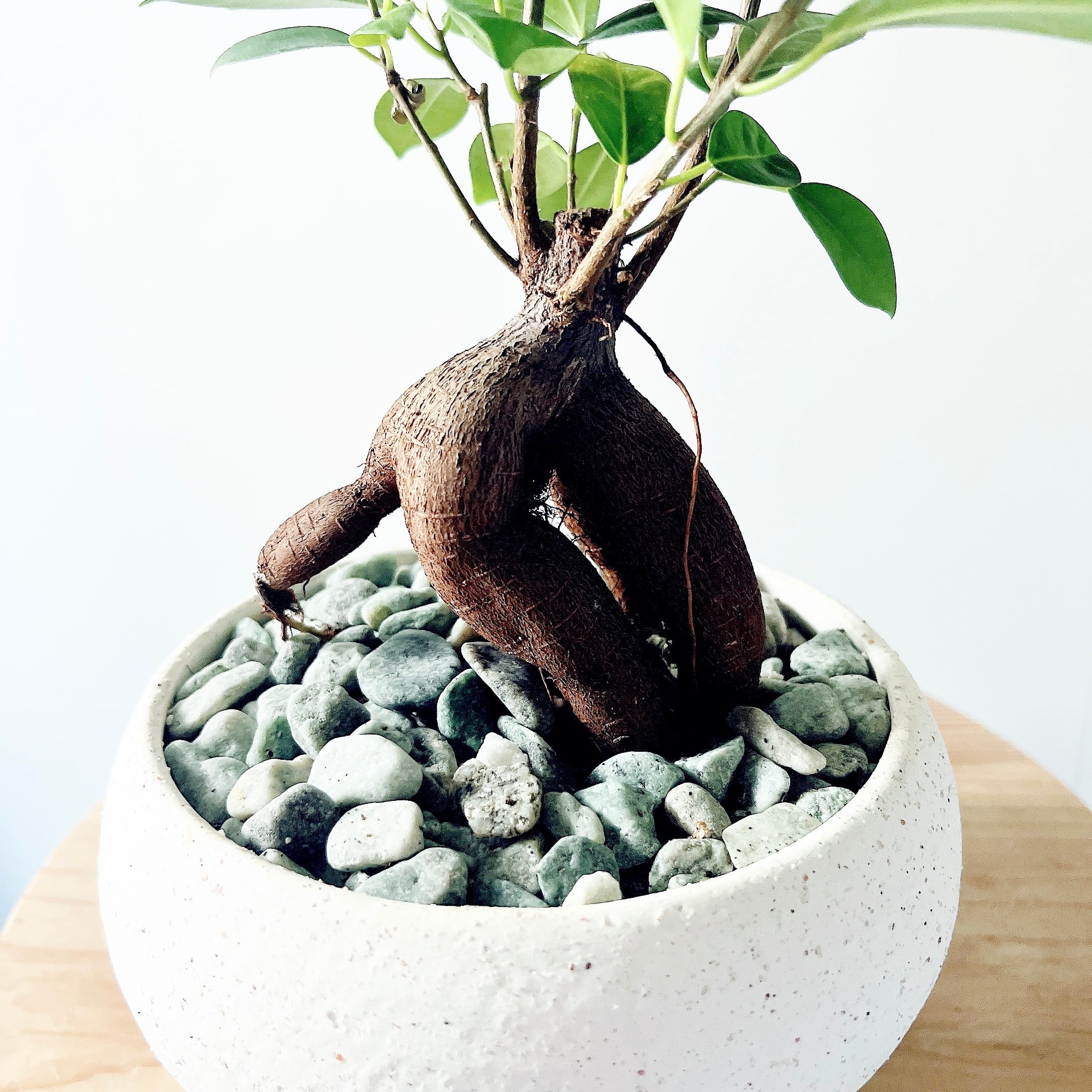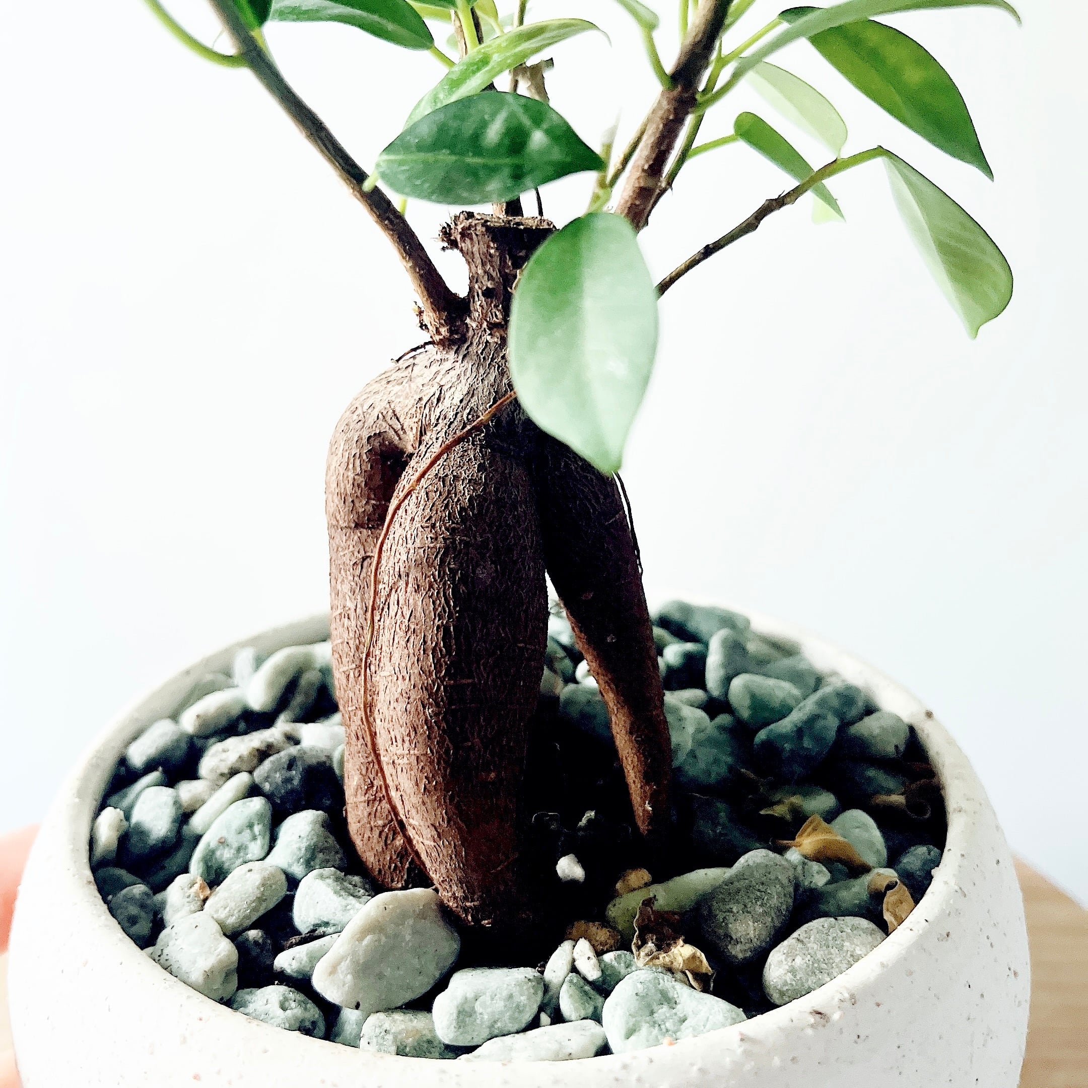 種から育てて幹が太くなったものをニンジンガジュマルと呼んでいます。小さくて可愛らしい艶やかな丸葉が人気です。
