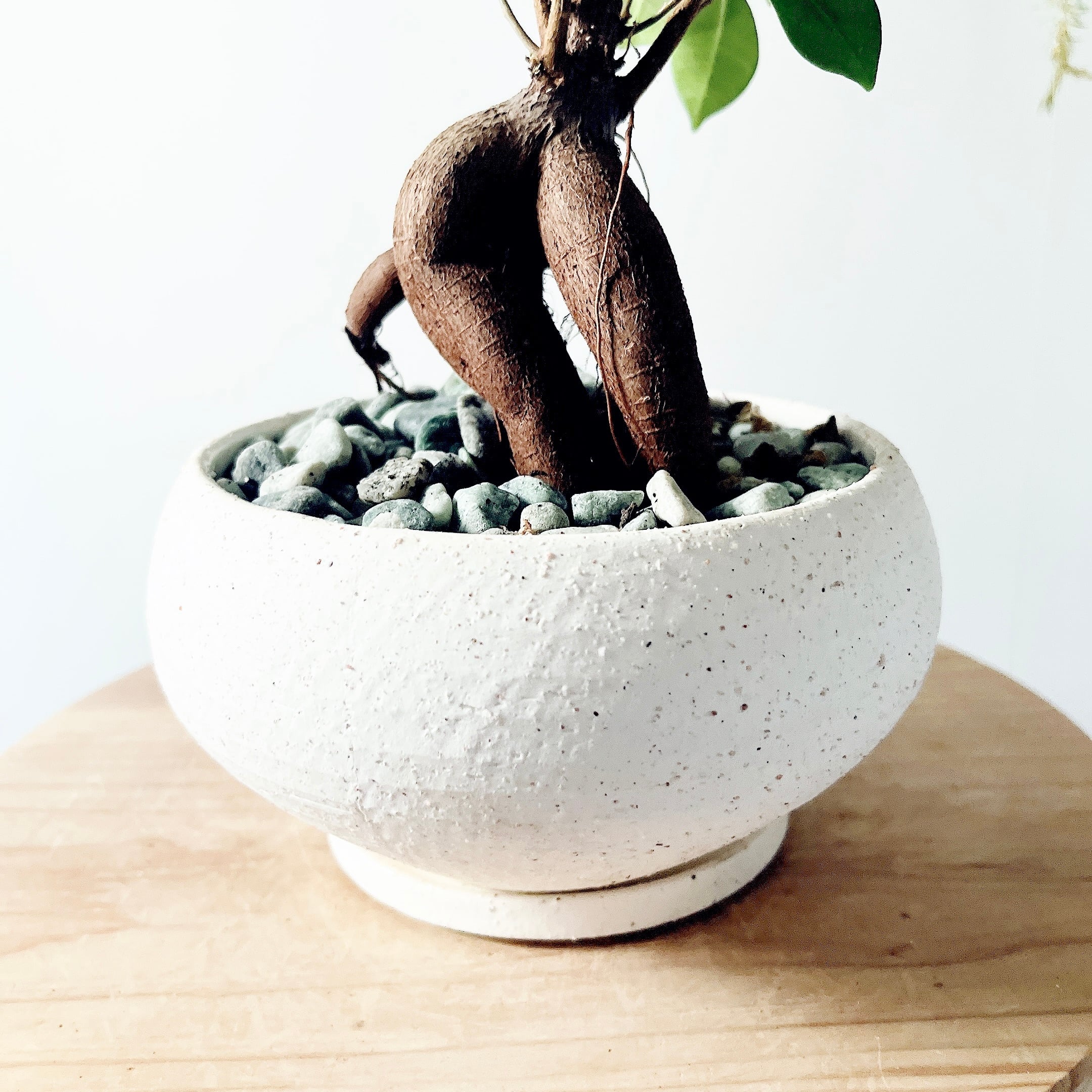 石粉を混ぜ込みザラザラとした質感の温もりある陶器鉢に仕立てました。