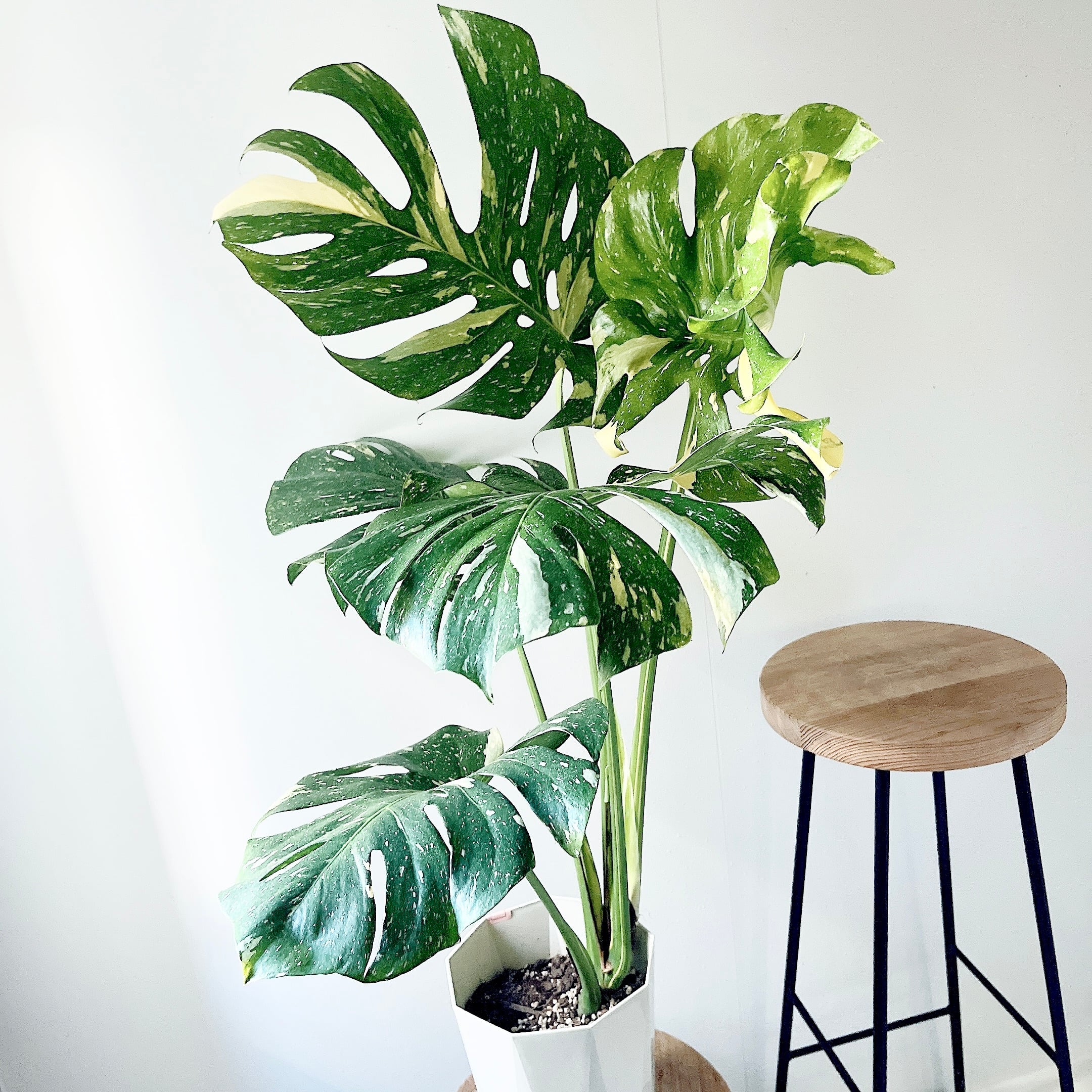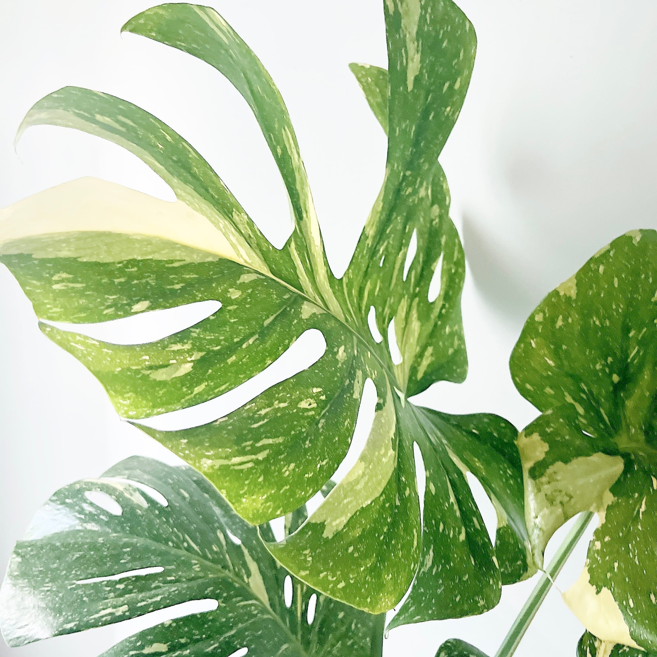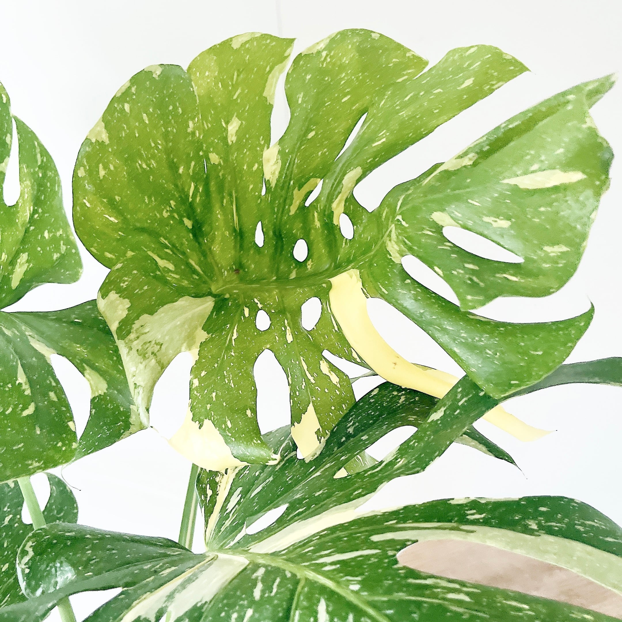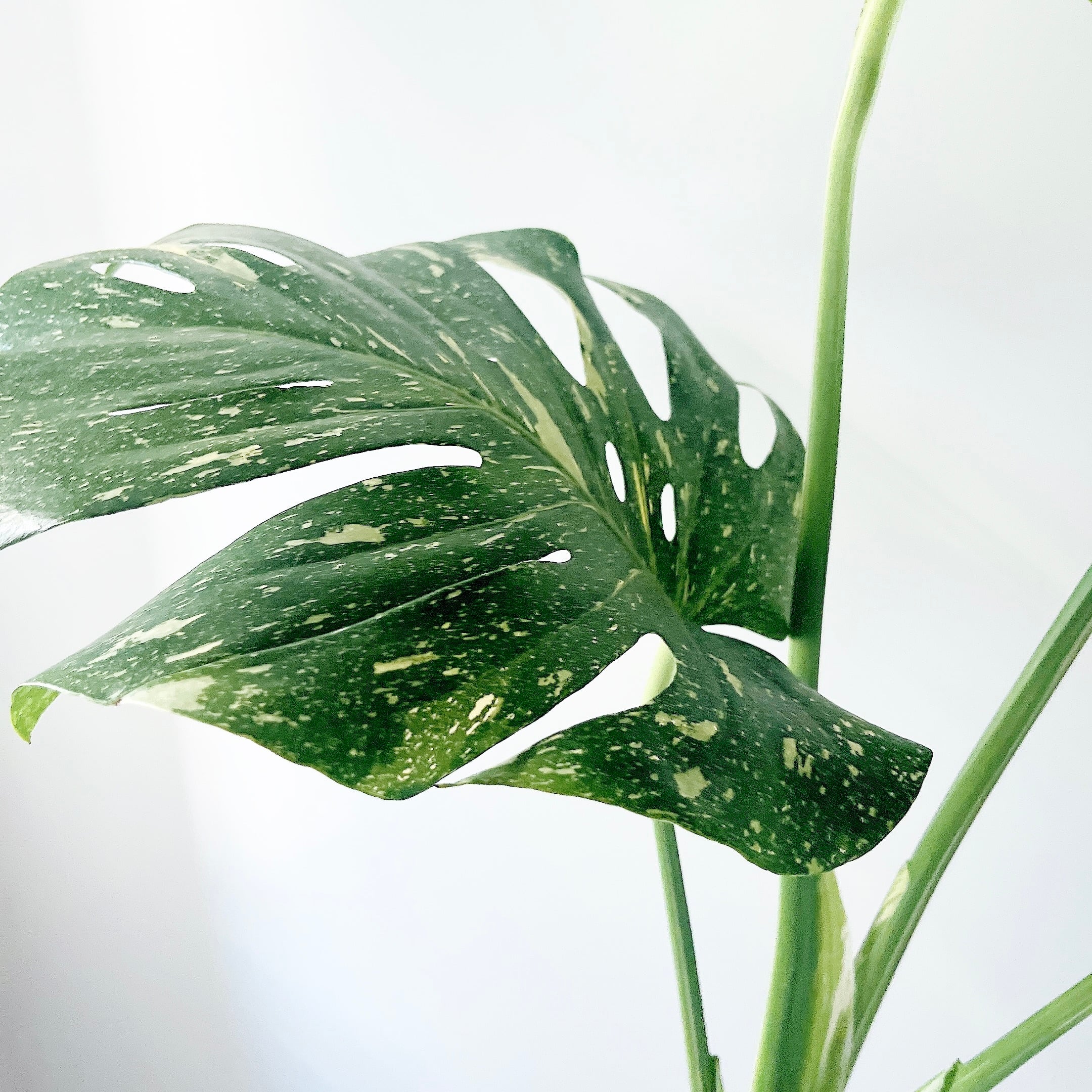 モンステラ タイコンステレーションは、星空のように散りばめられたクリーム色の斑が美しく、1枚1枚異なる表情を楽しめる魅力的な品種です。