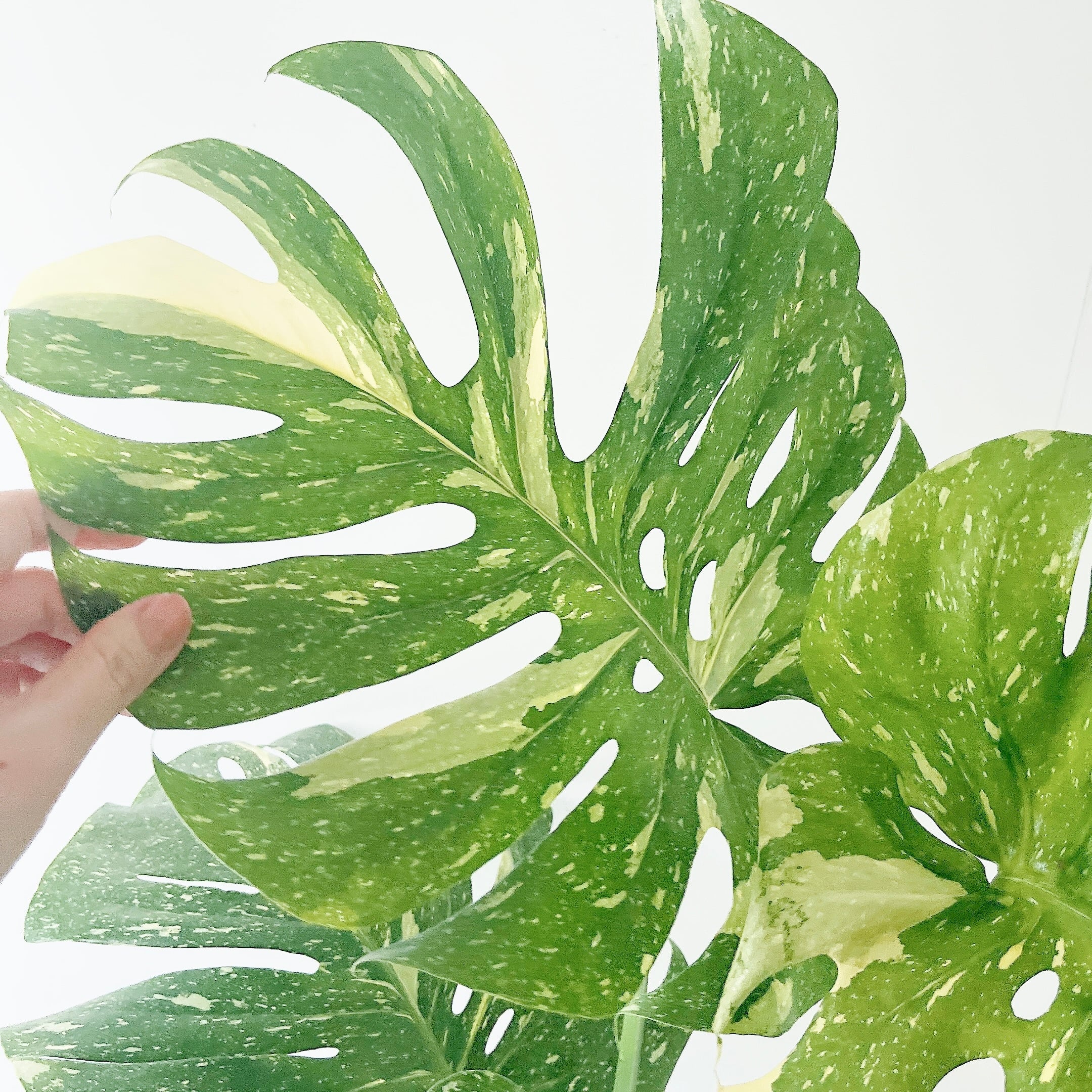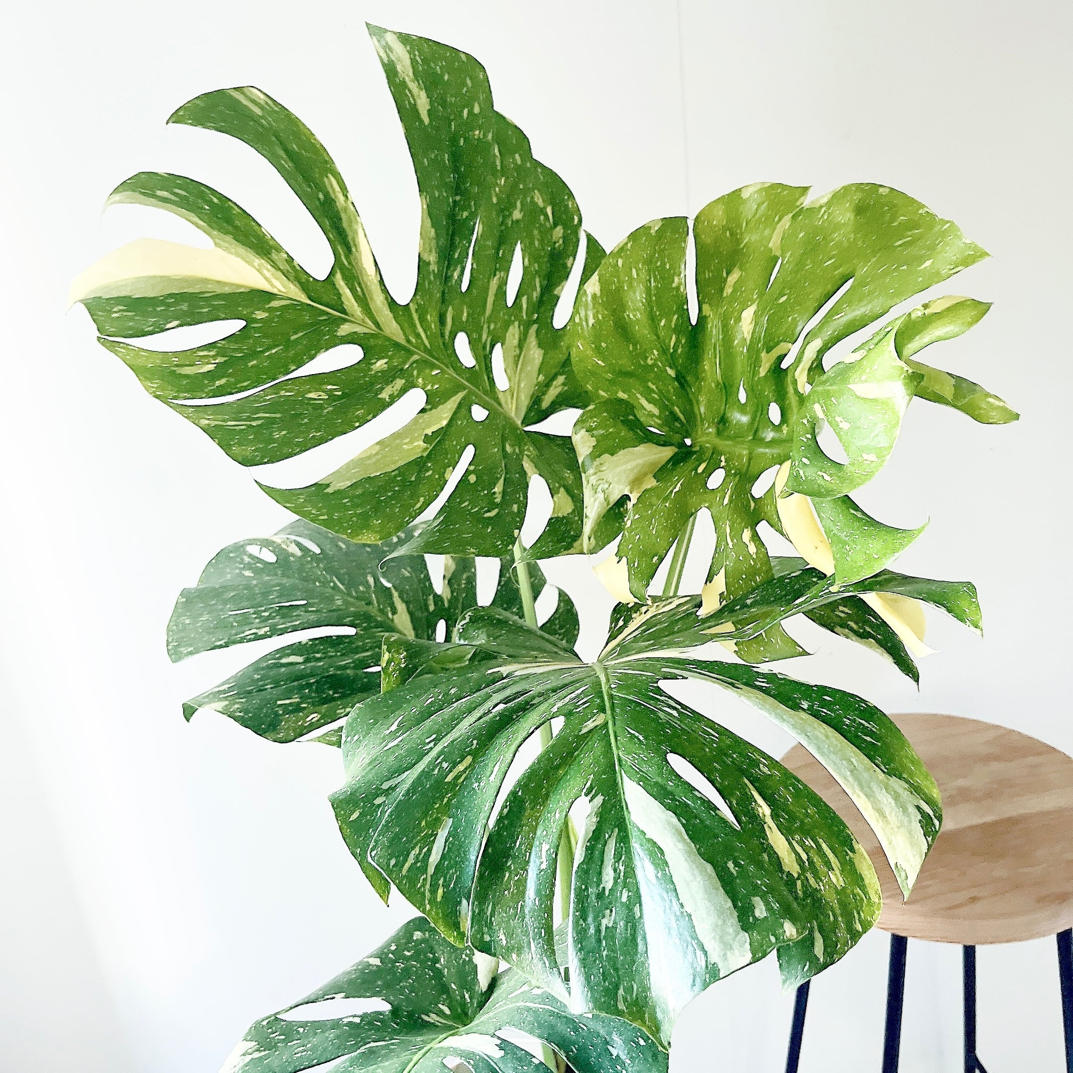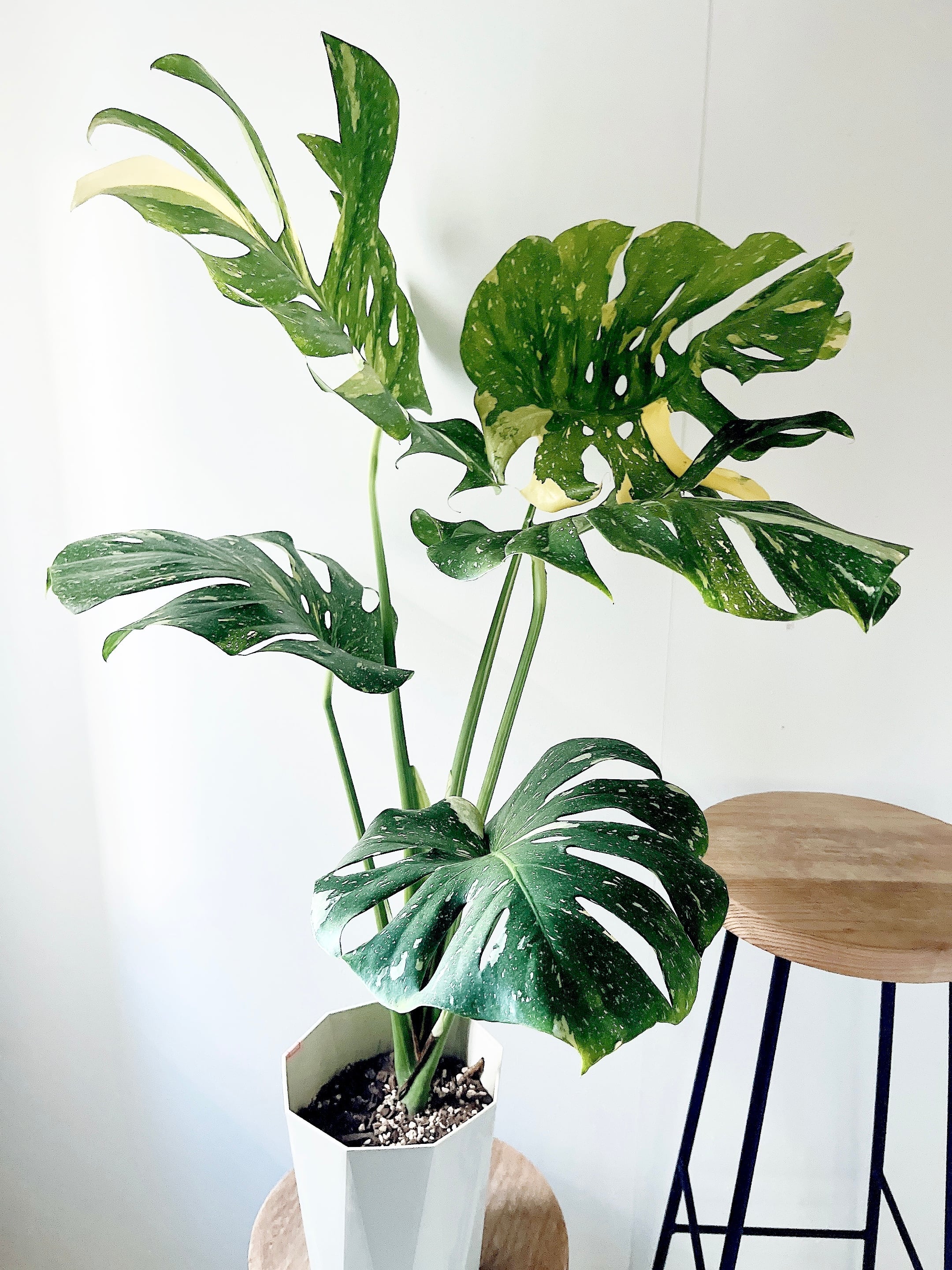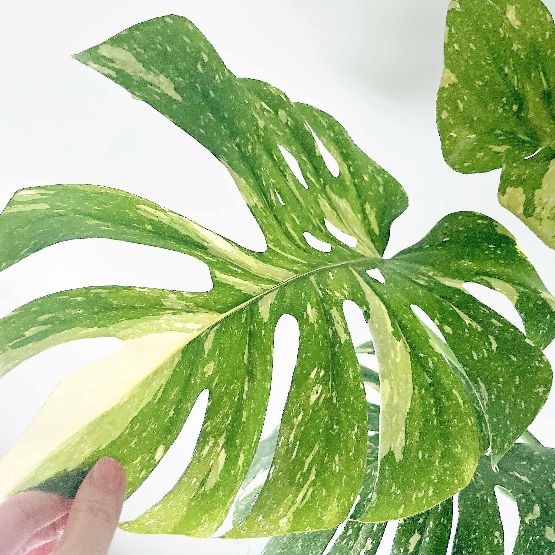 モンステラ タイコンステレーションは、星空のように散りばめられたクリーム色の斑が美しく、1枚1枚異なる表情を楽しめる魅力的な品種です。
