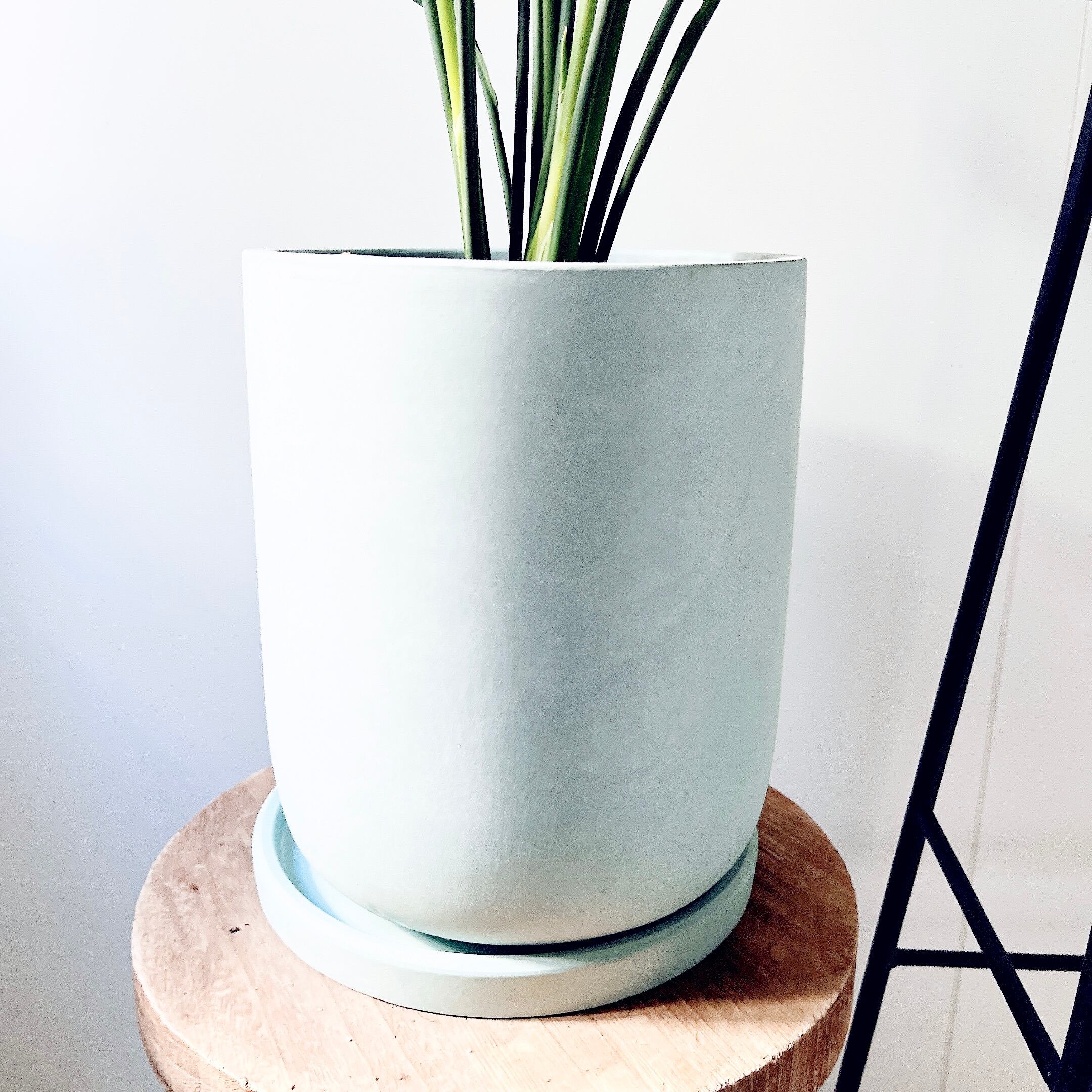 落ち着いたグレーの陶器鉢と受け皿付き。