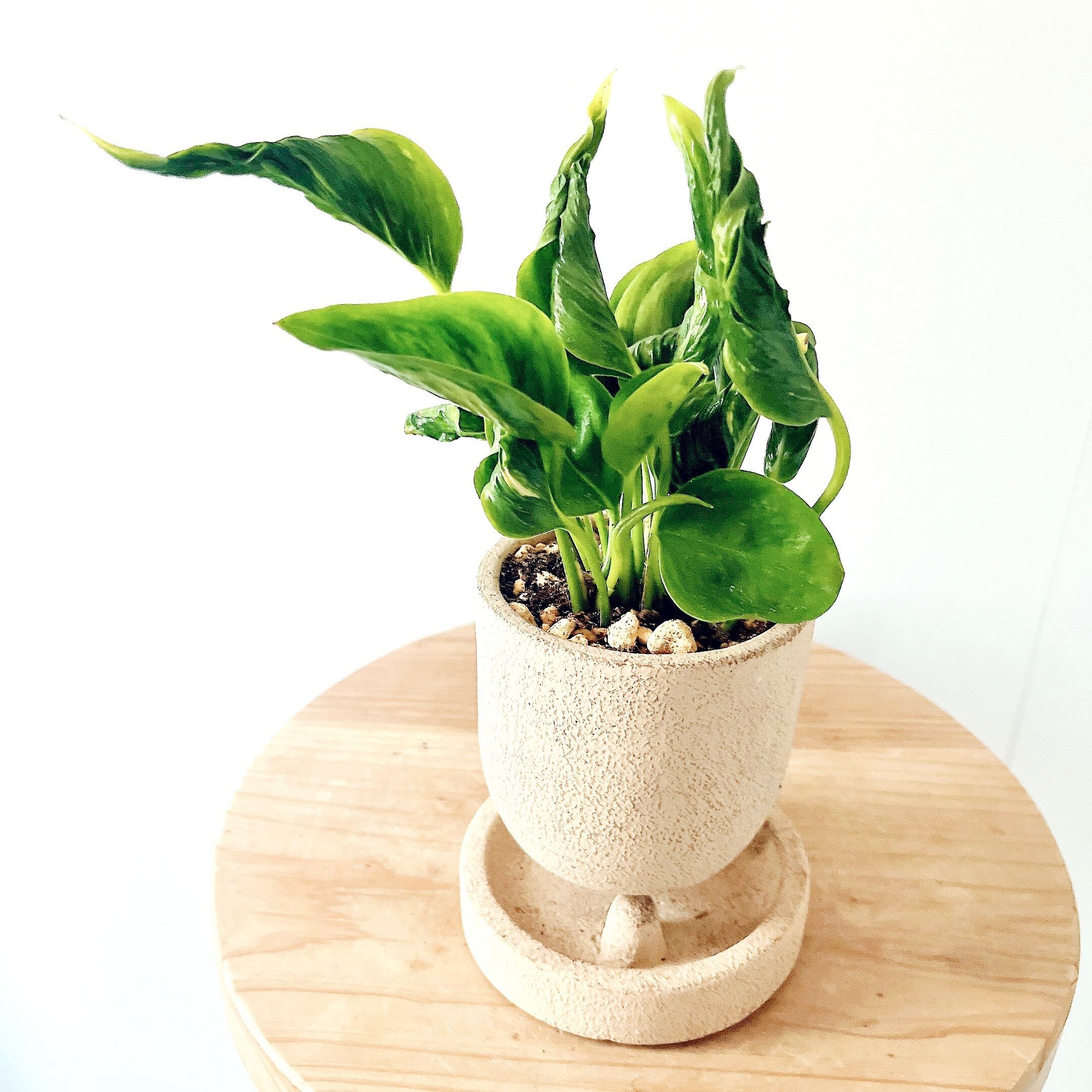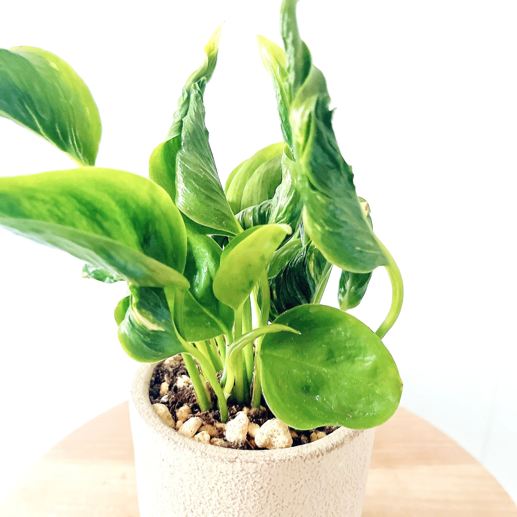 くるんとカールし、ツンとよじれた独特な葉姿が印象的な、希少ポトス「シャングリラ」。