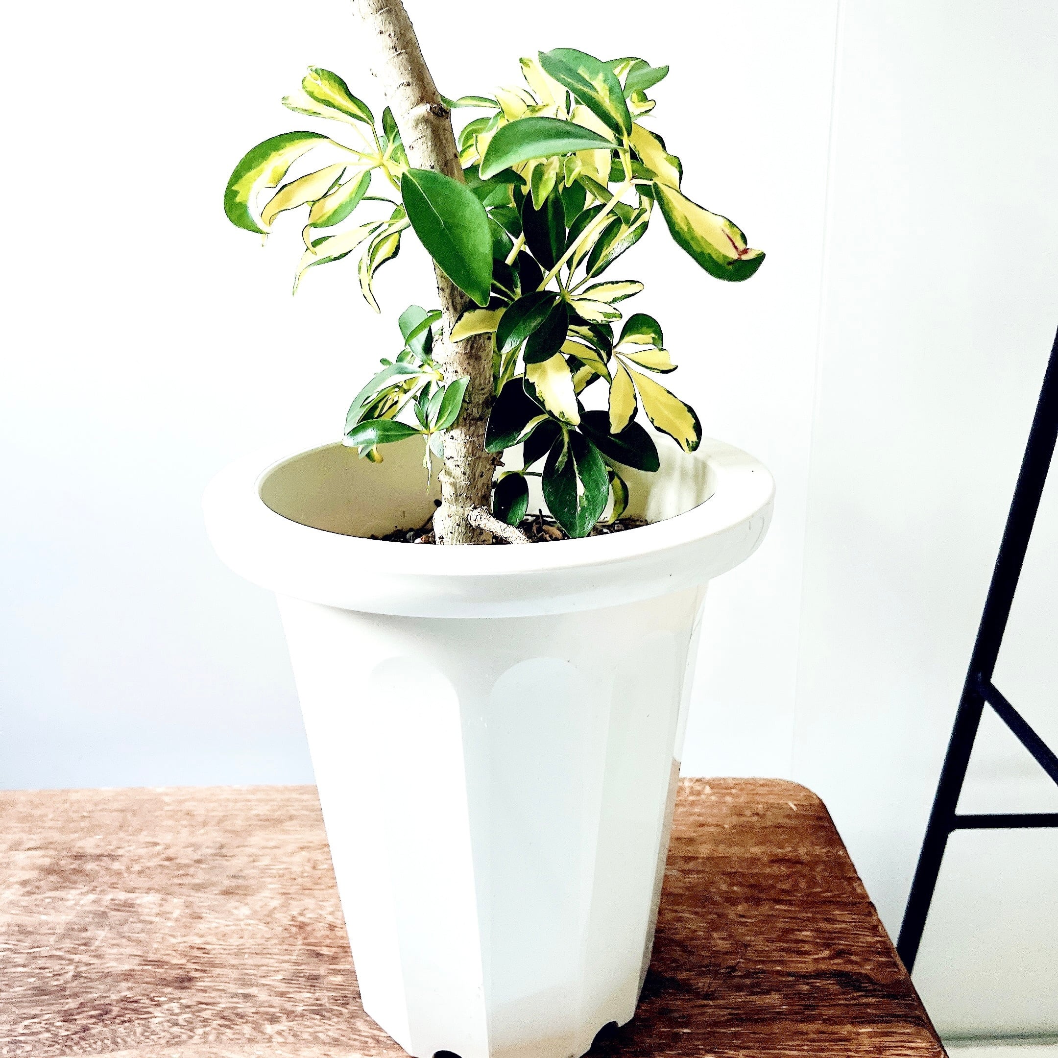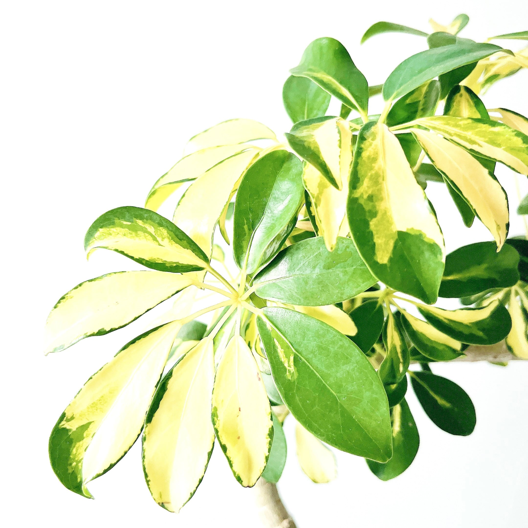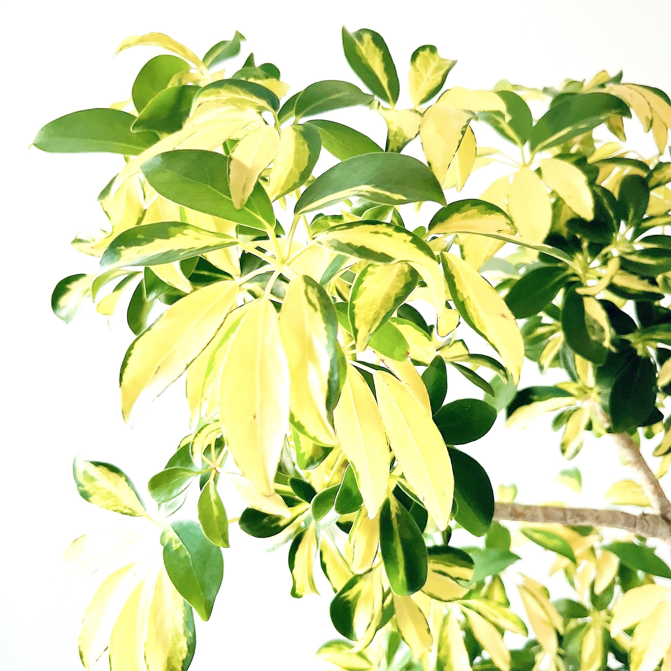 黄斑とライムグリーンの斑が美しい希少なシェフレラ「ルナ」。