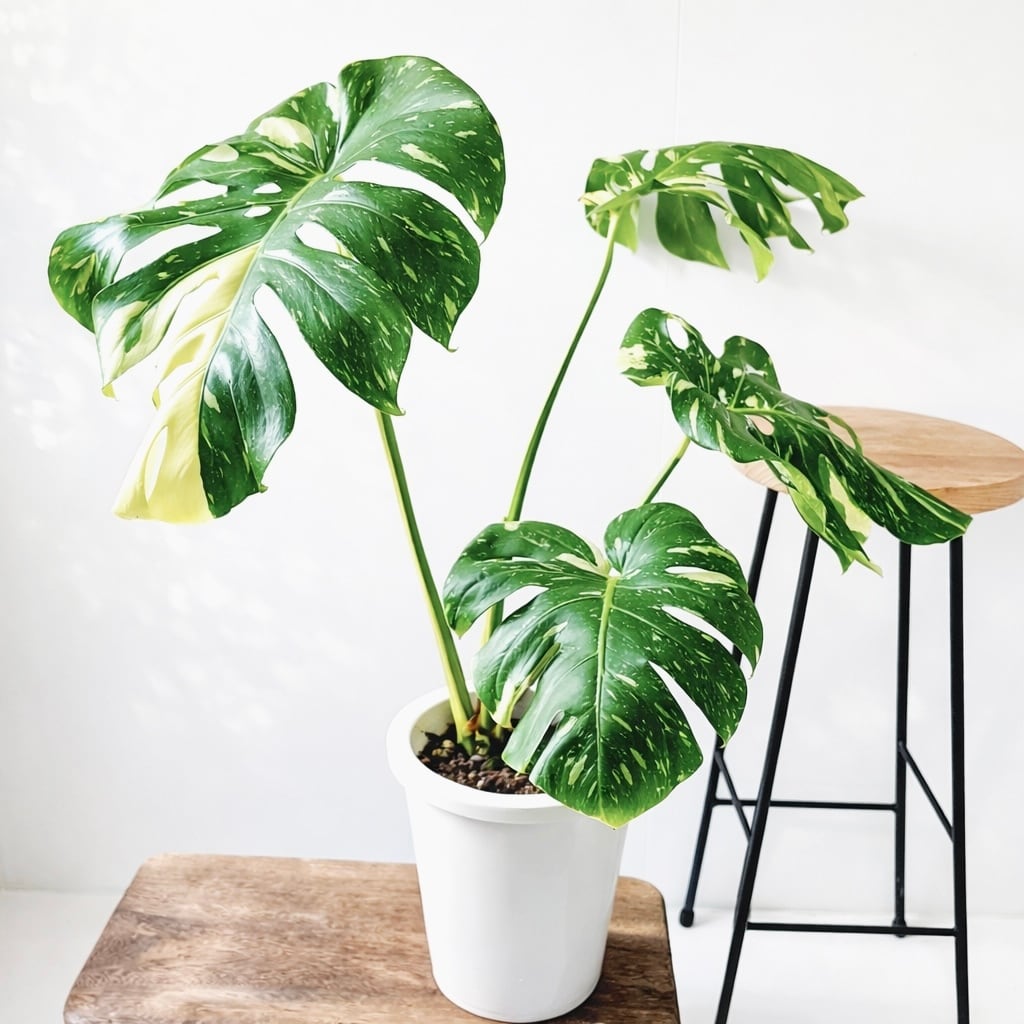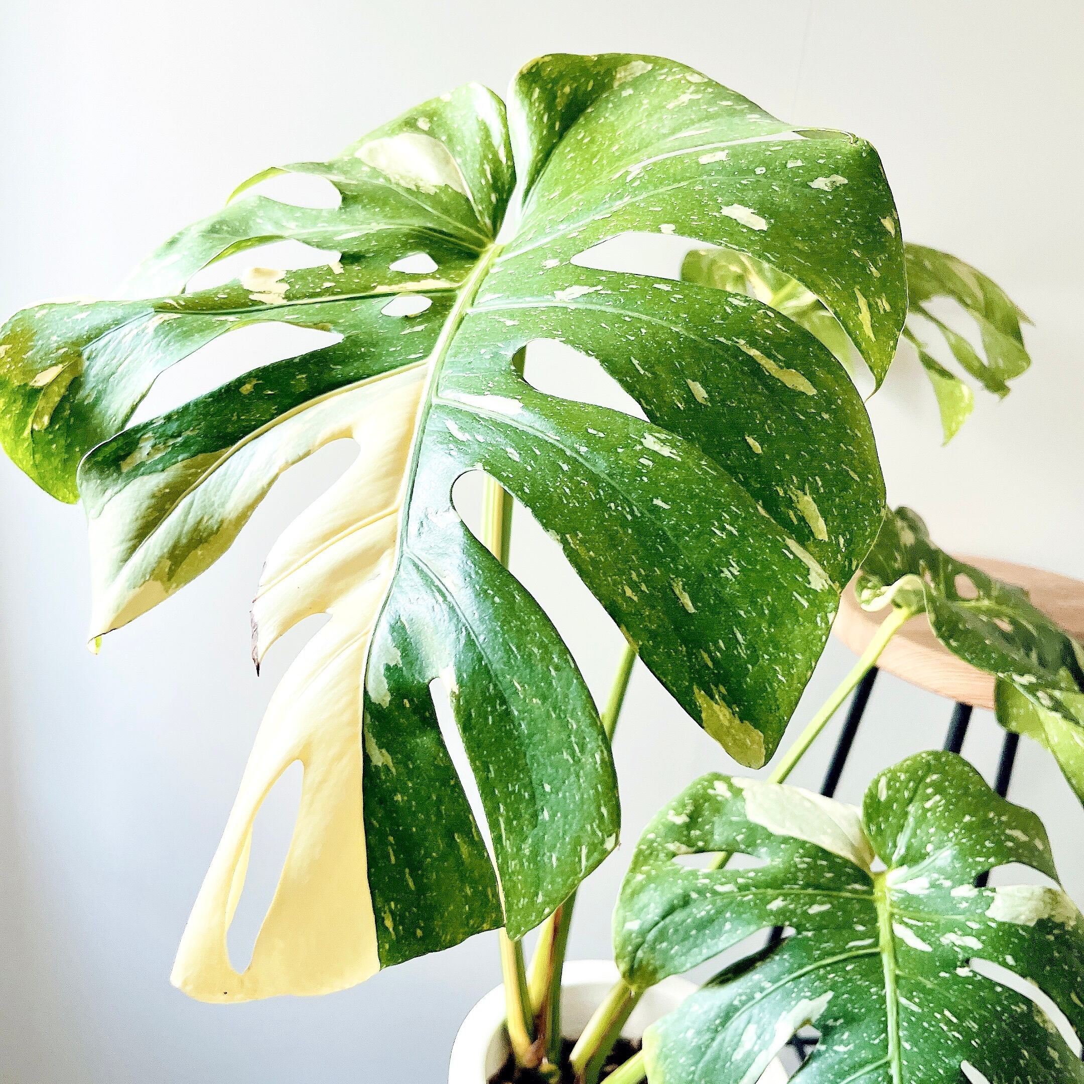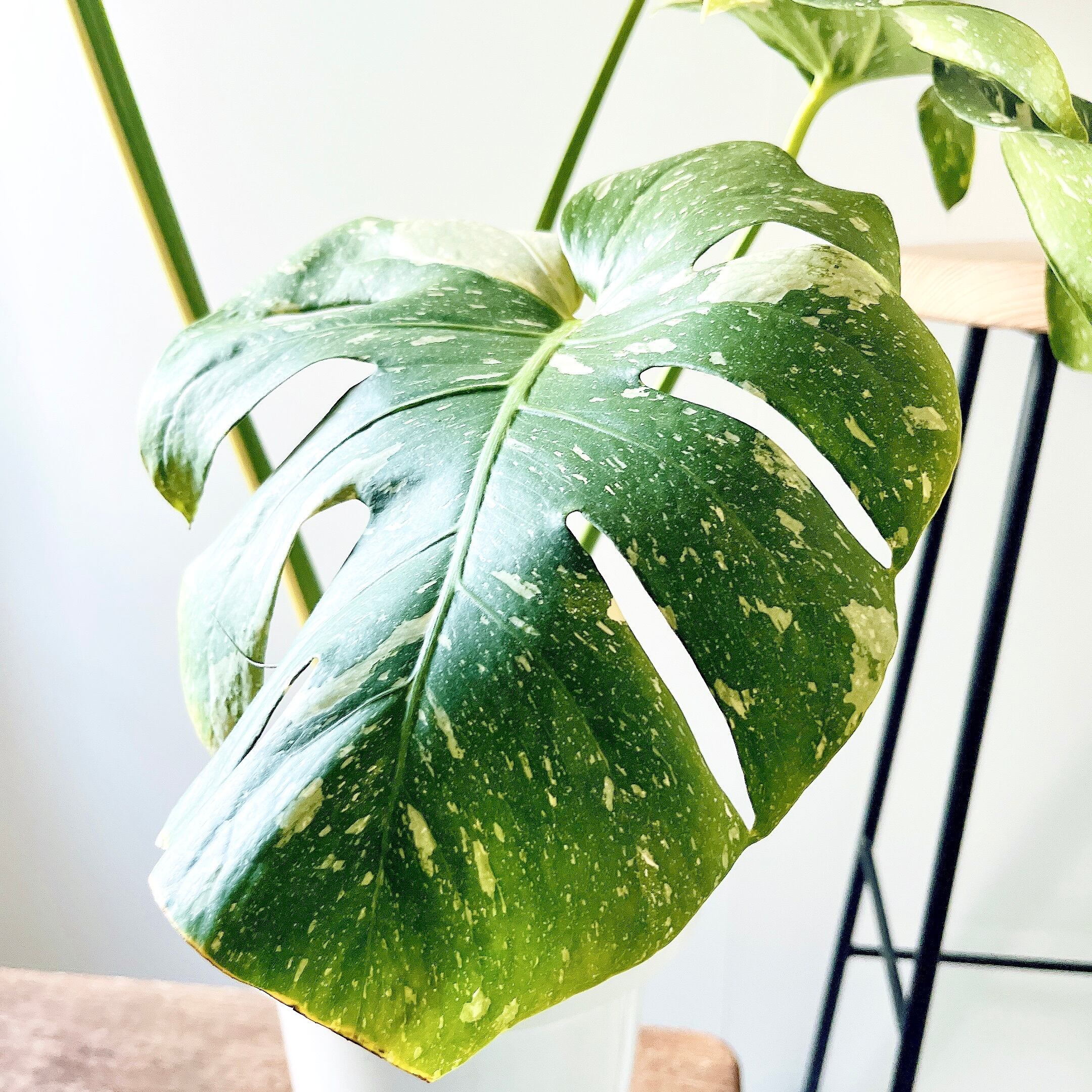 モンステラ タイコンステレーションは、星空のように散りばめられたクリーム色の斑が美しく、1枚1枚異なる表情を楽しめる魅力的な品種です。