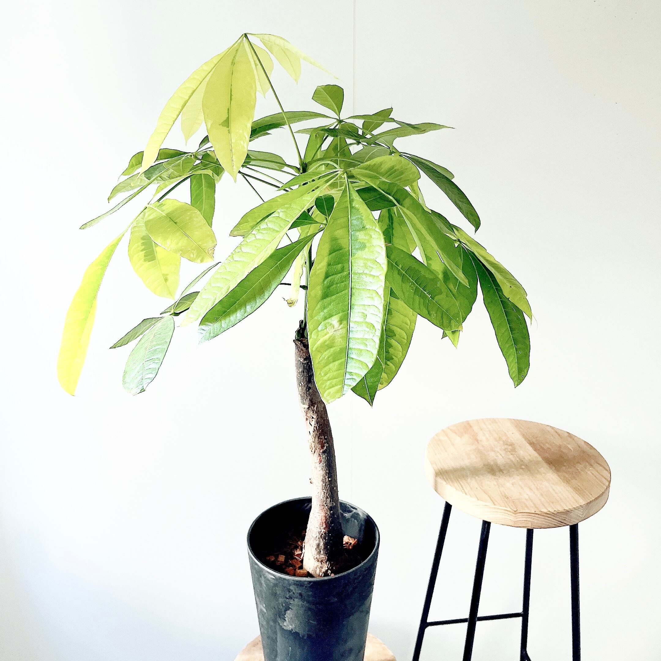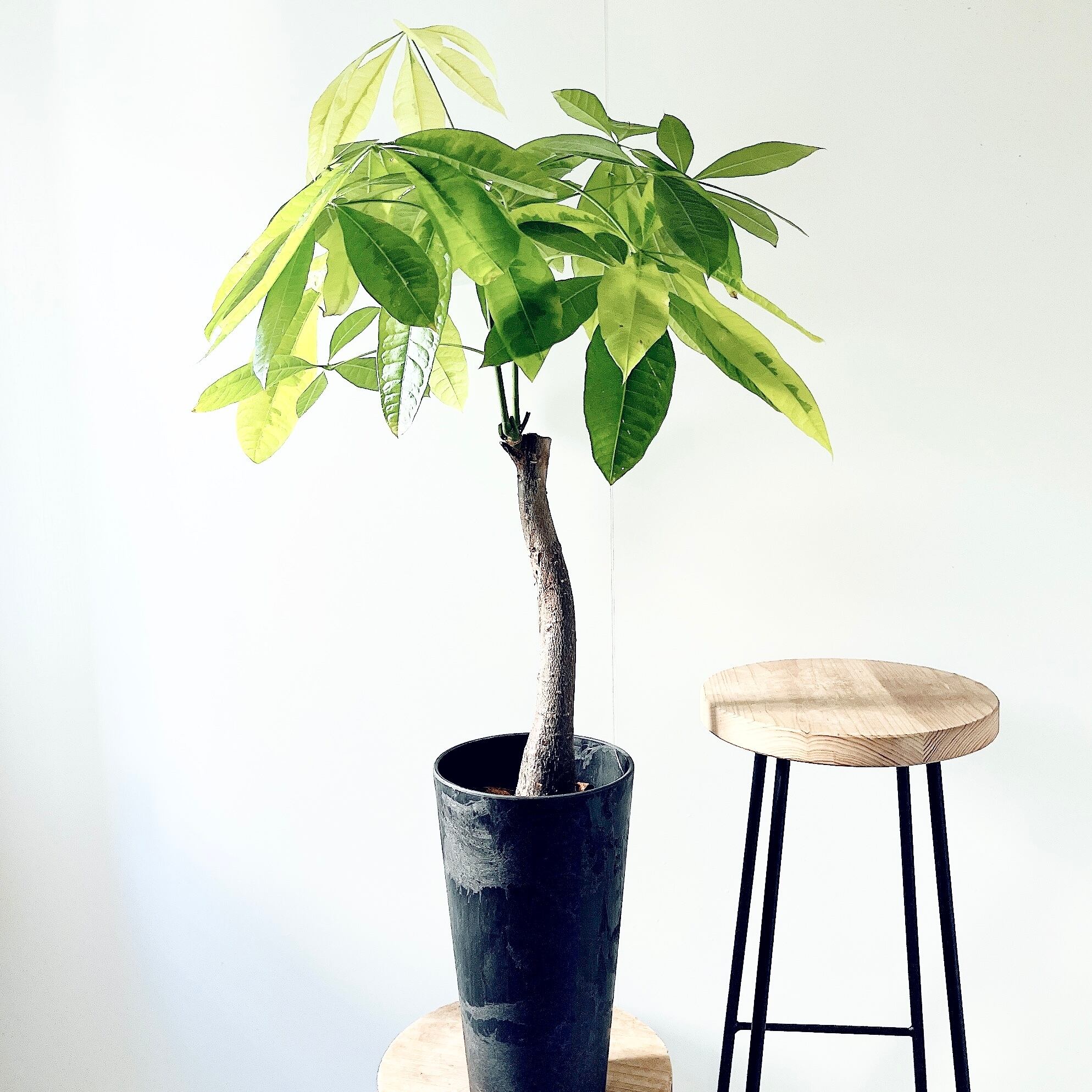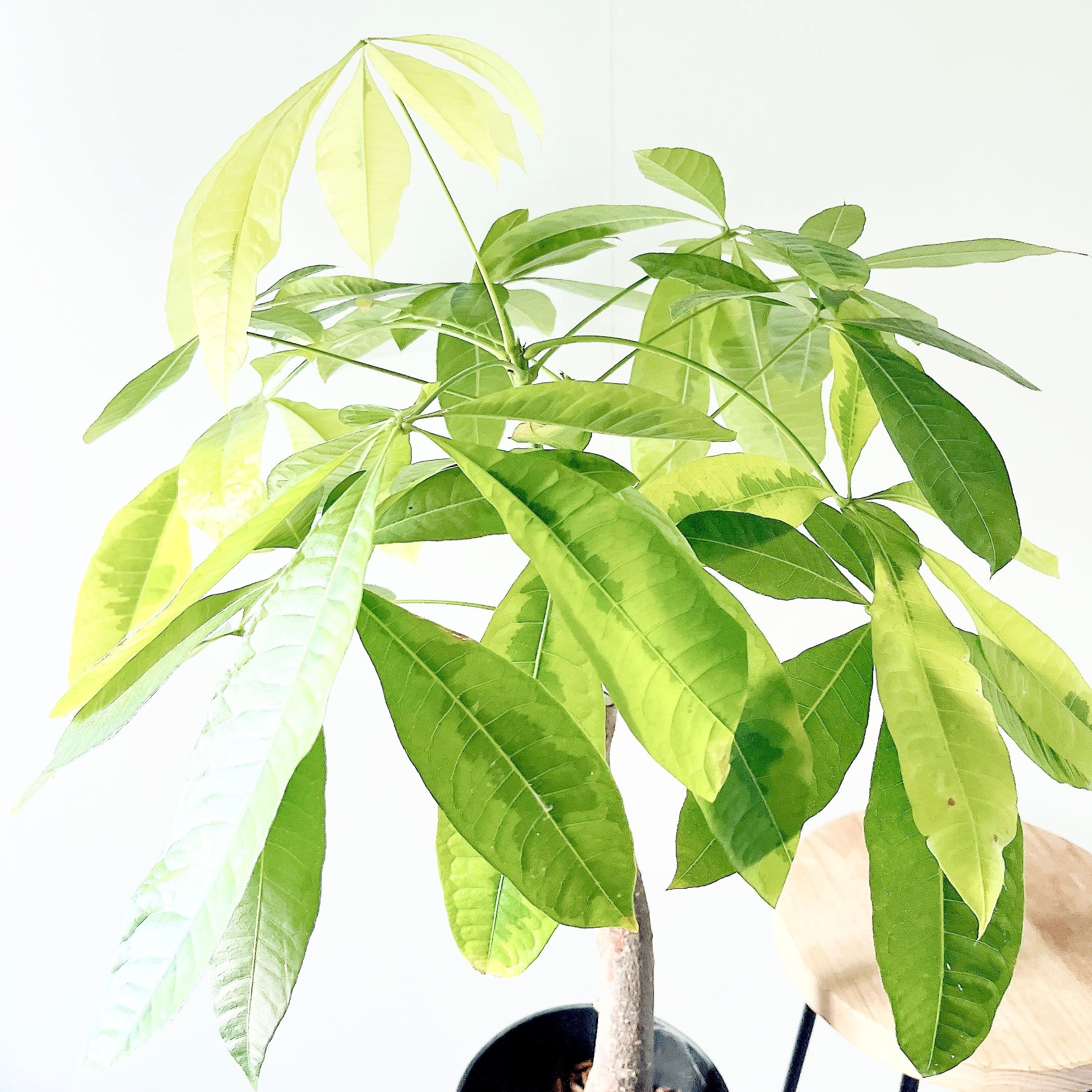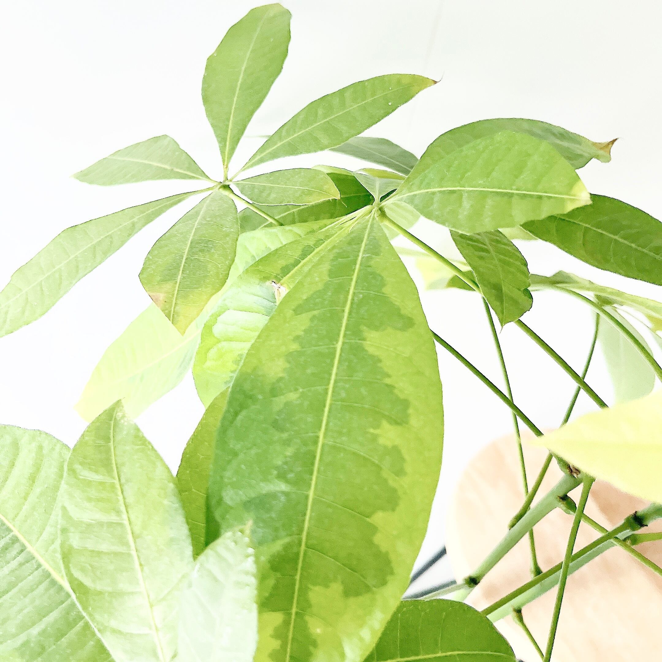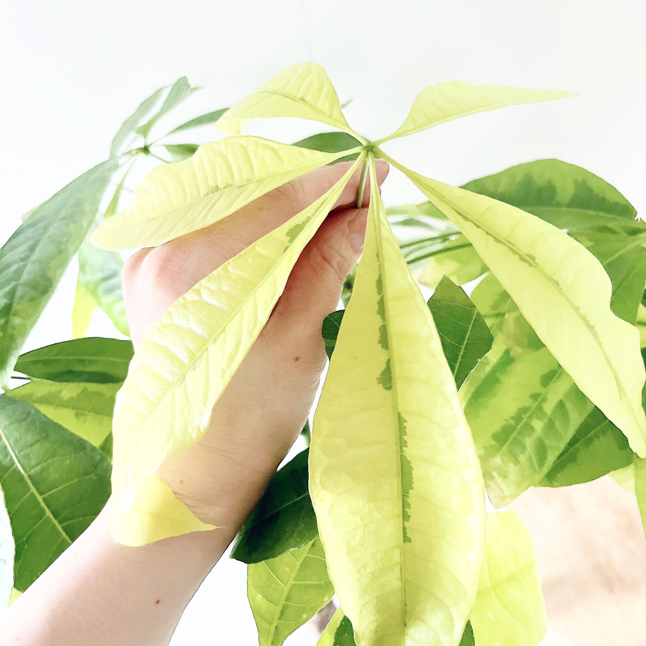 斑入りのパキラには、ムーンライトとミルキーウェイがございますが、こちらのムーンライトはより希少な品種となっております。