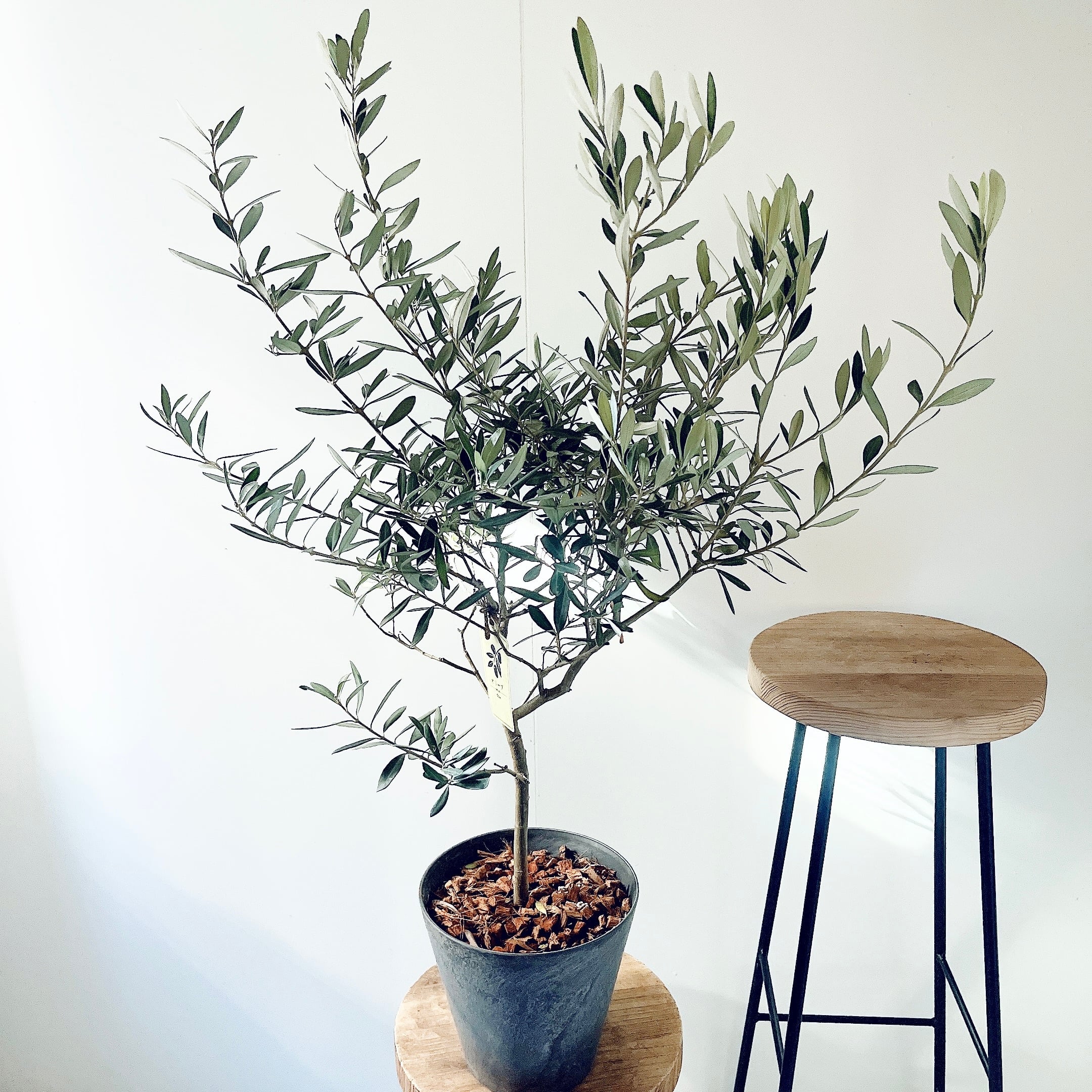 チプレッシーノは直立性のオリーブで上方へバランスよく成長します。青みが強い美しいシルバーリーフが人気の品種です。