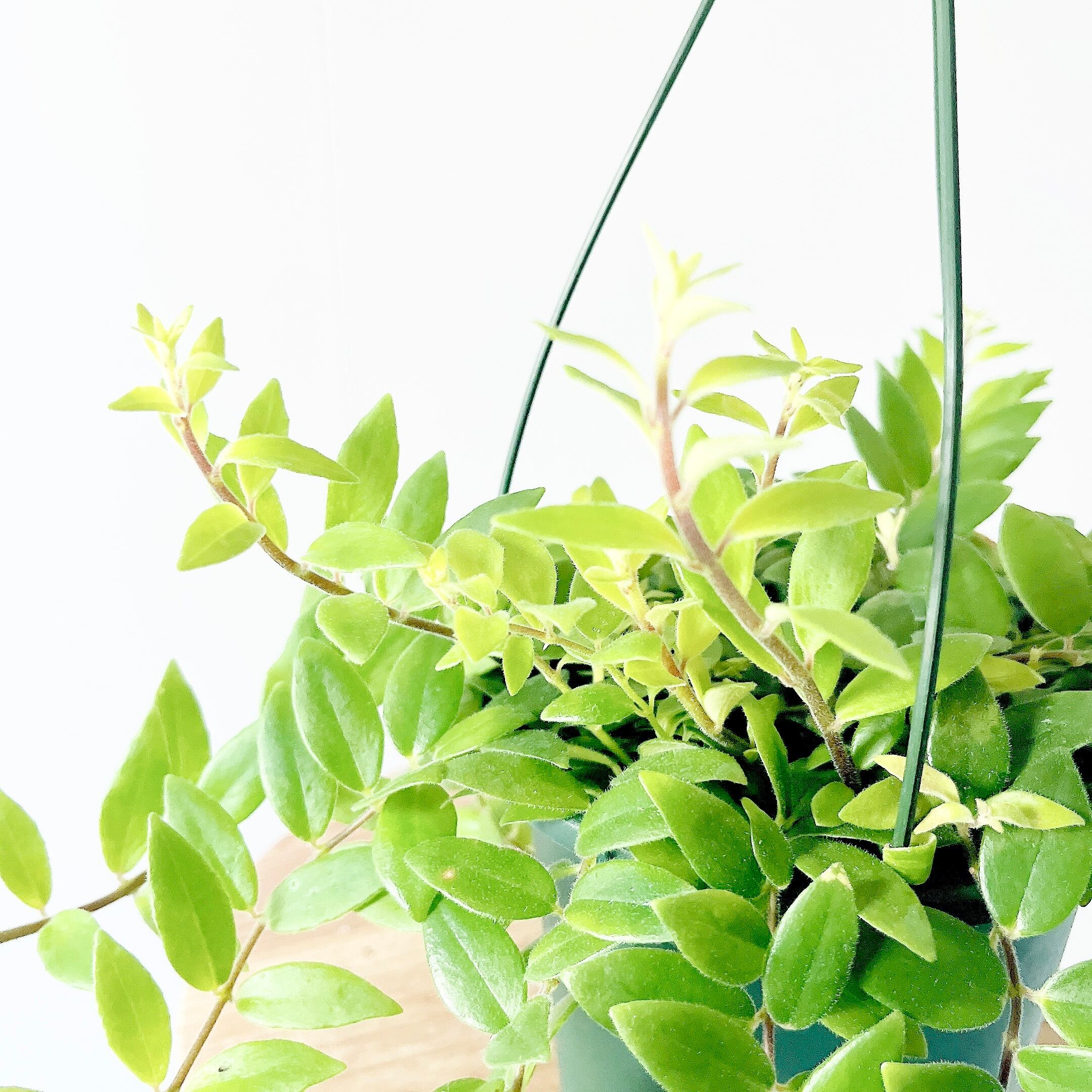 小さな丸葉がすだれのように美しく優しく窓辺を彩ります。少し斑入りの個体です。