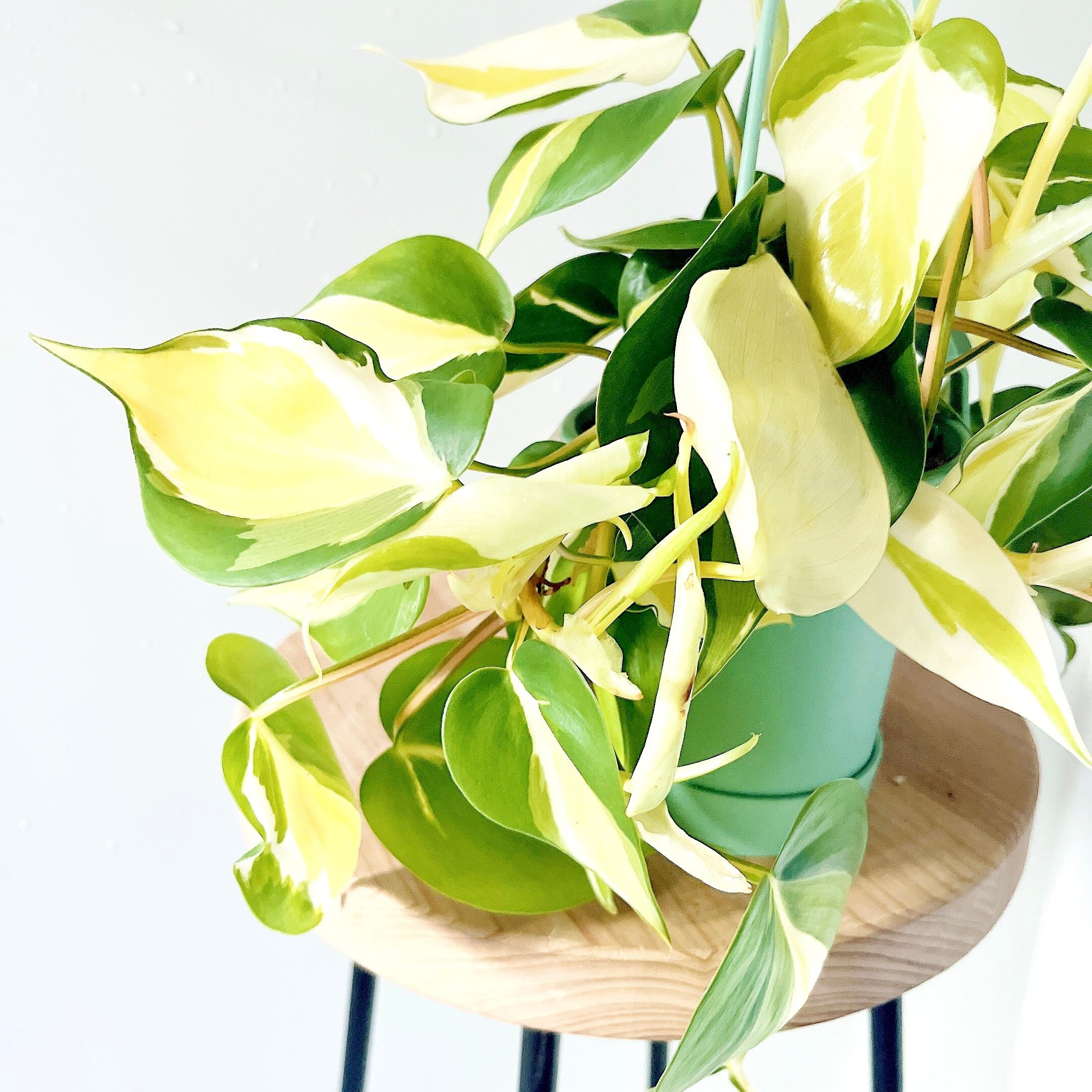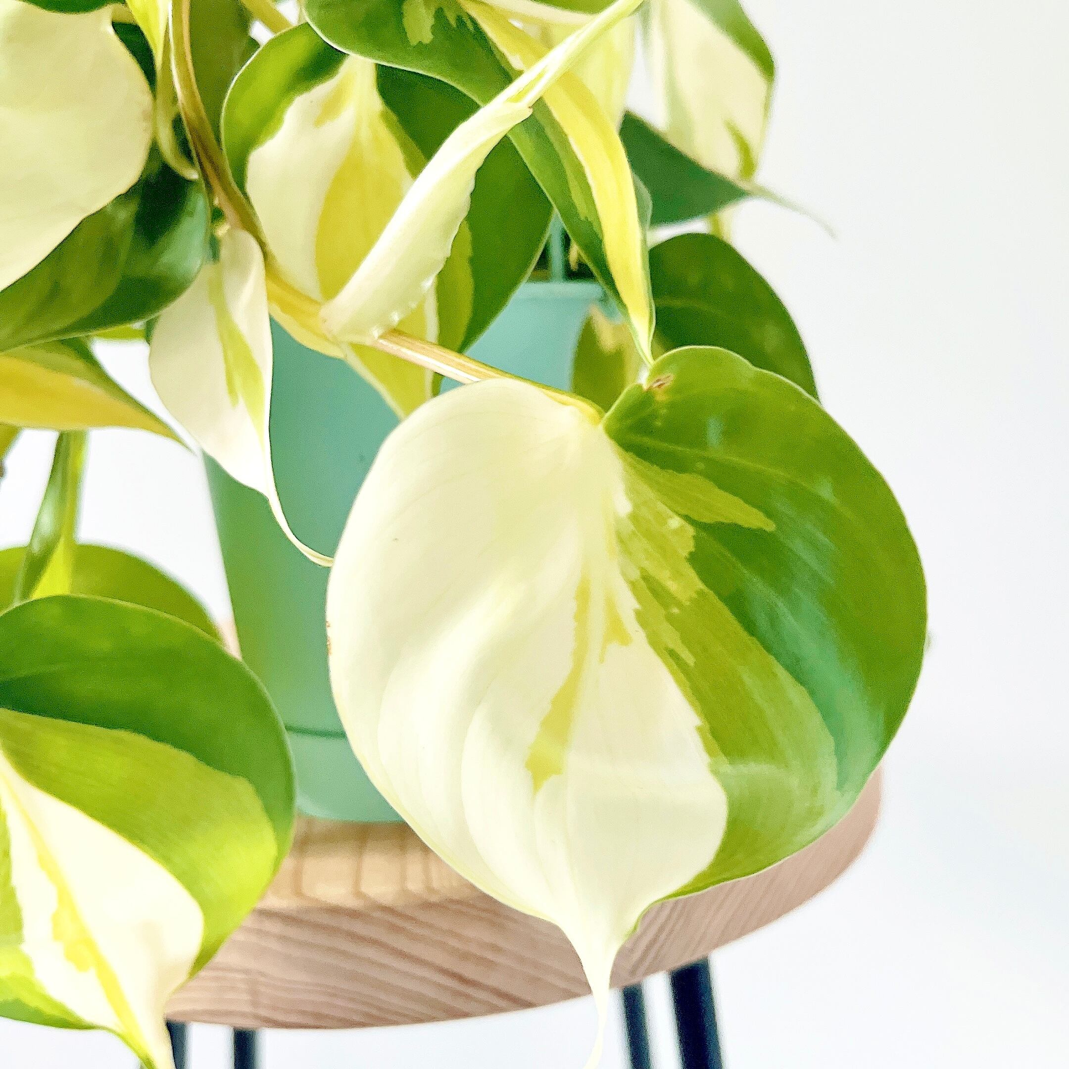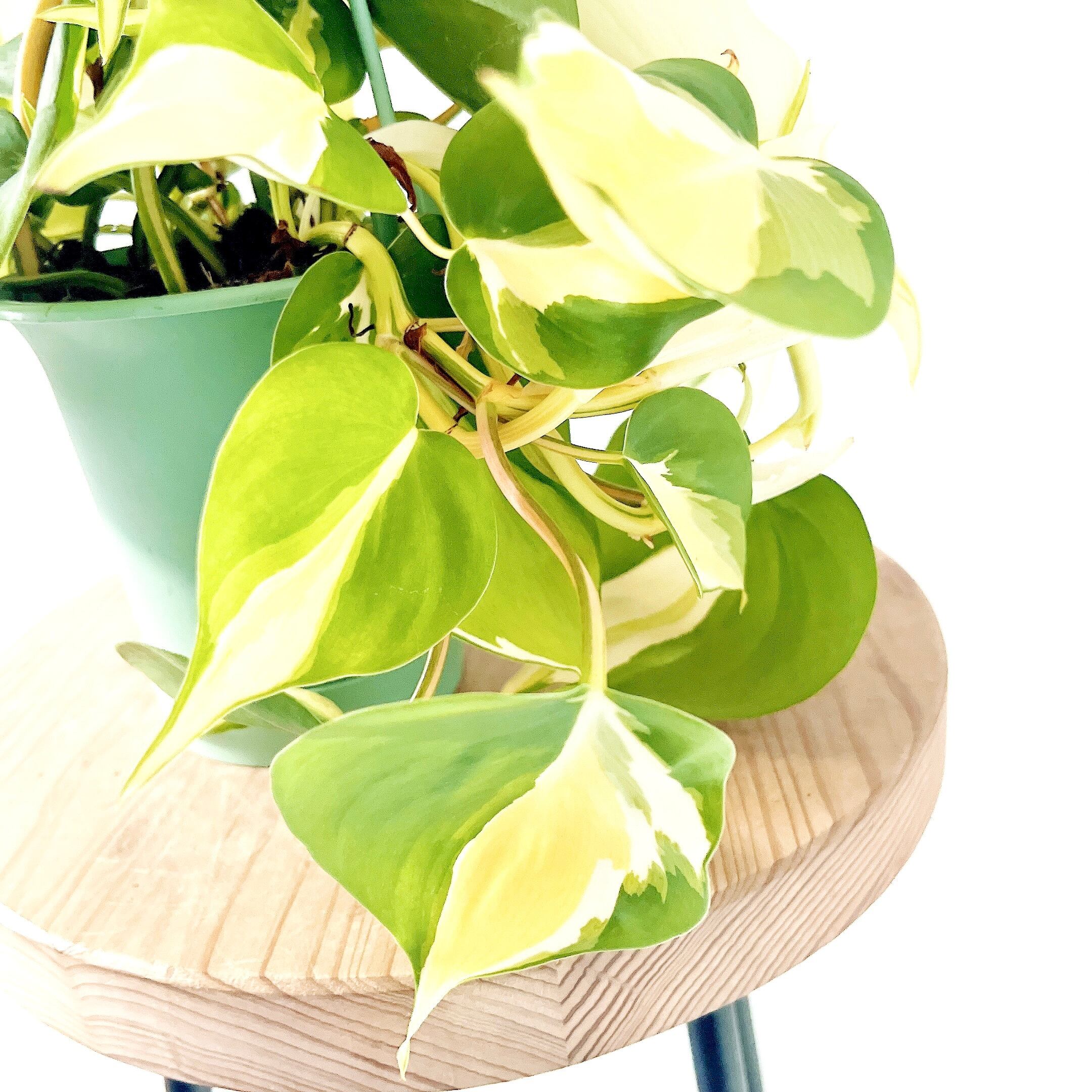 フィロデンドロン クリームスプラッシュは、グリーン、イエロー、ホワイトのトリカラーの美しい葉が魅力のつる性植物です。