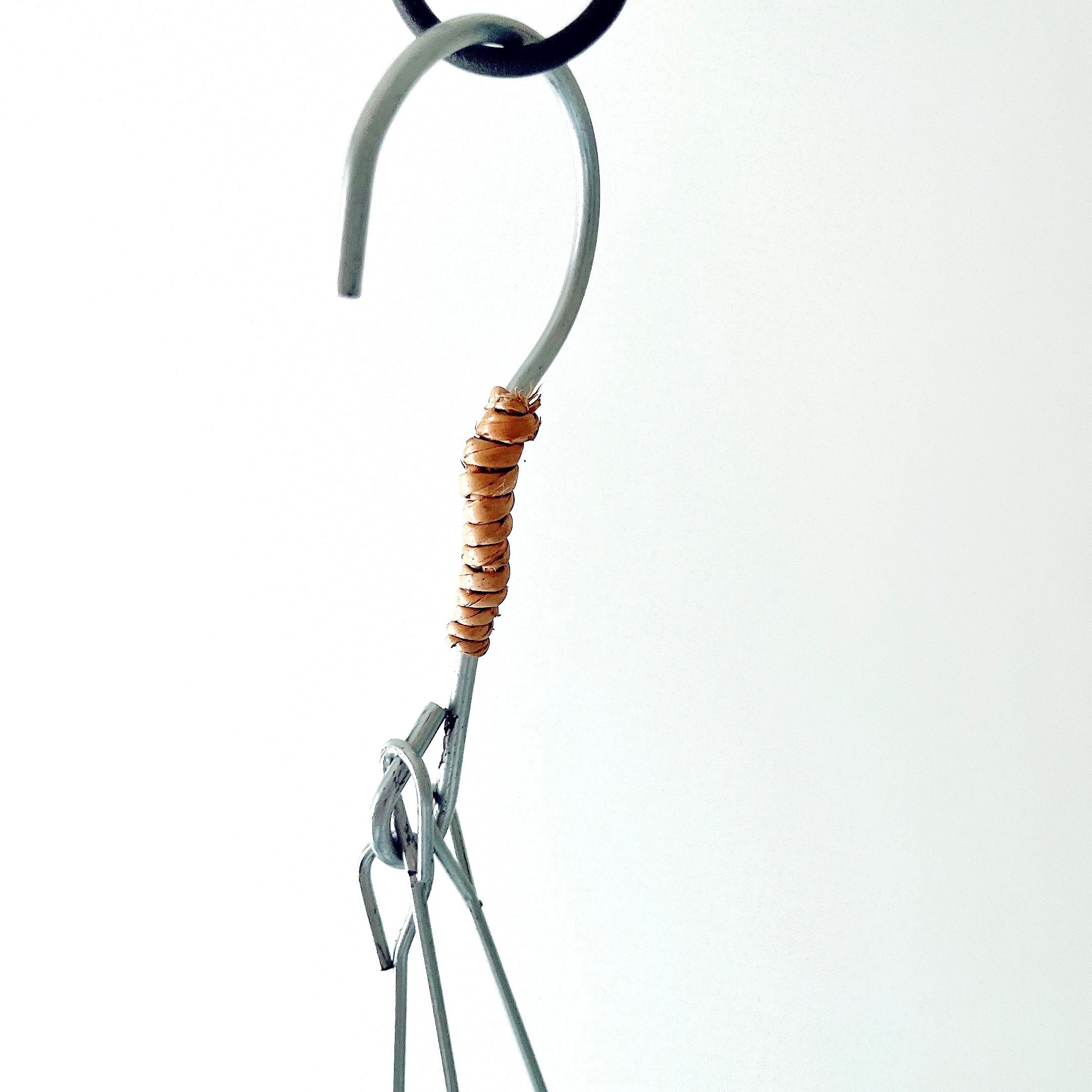 付属のワイヤーハンギングは、ハンドメイドで編まれたデザイン。