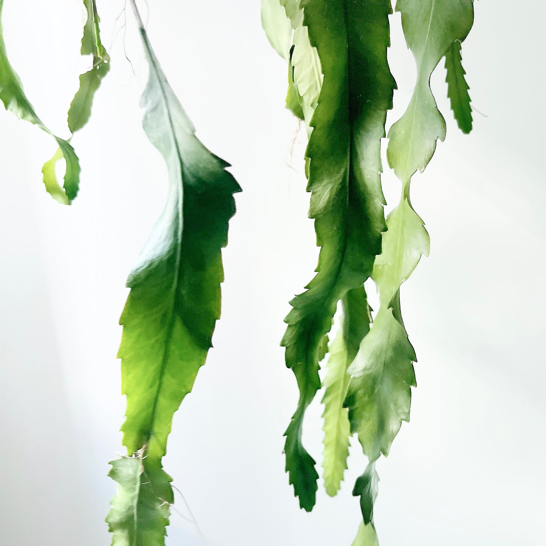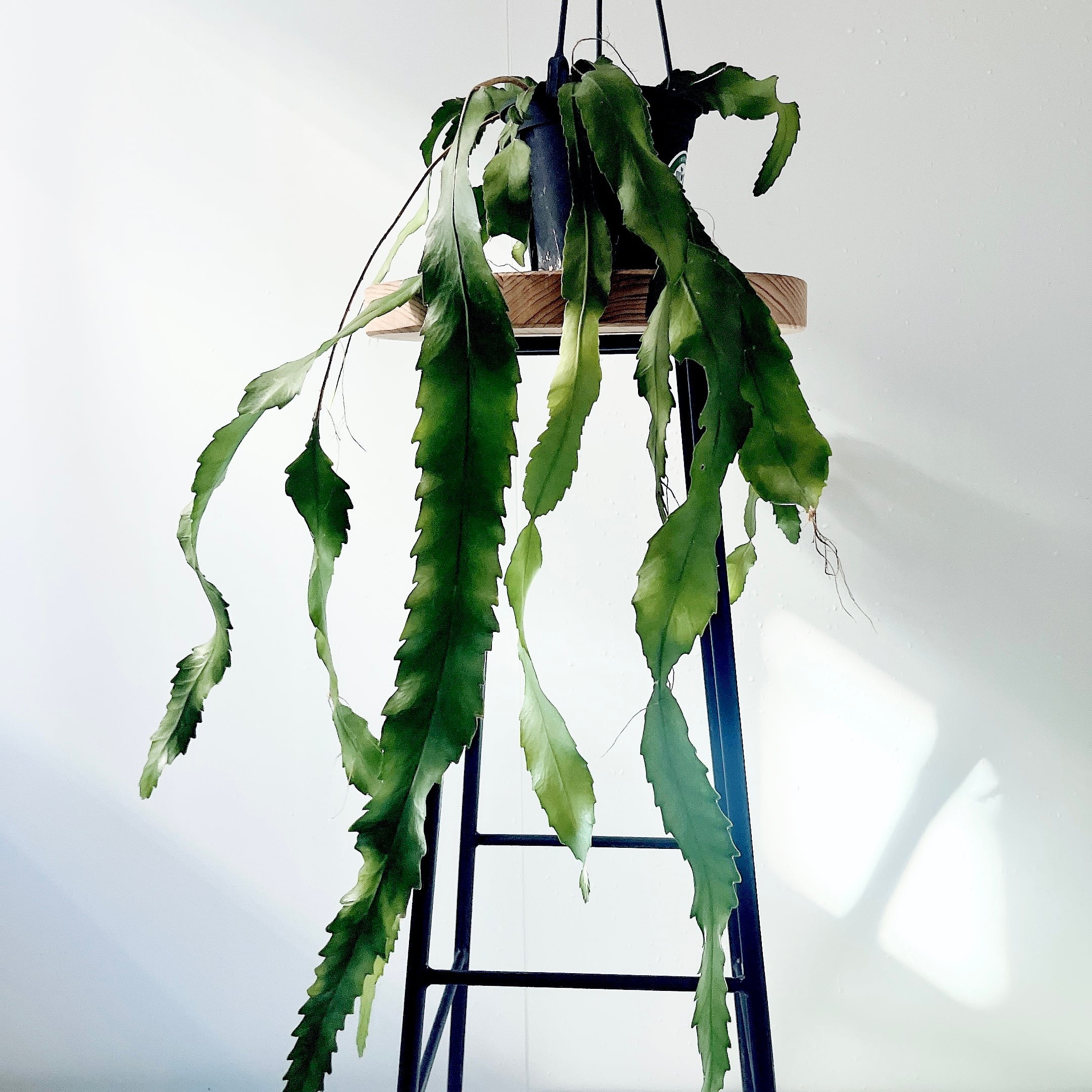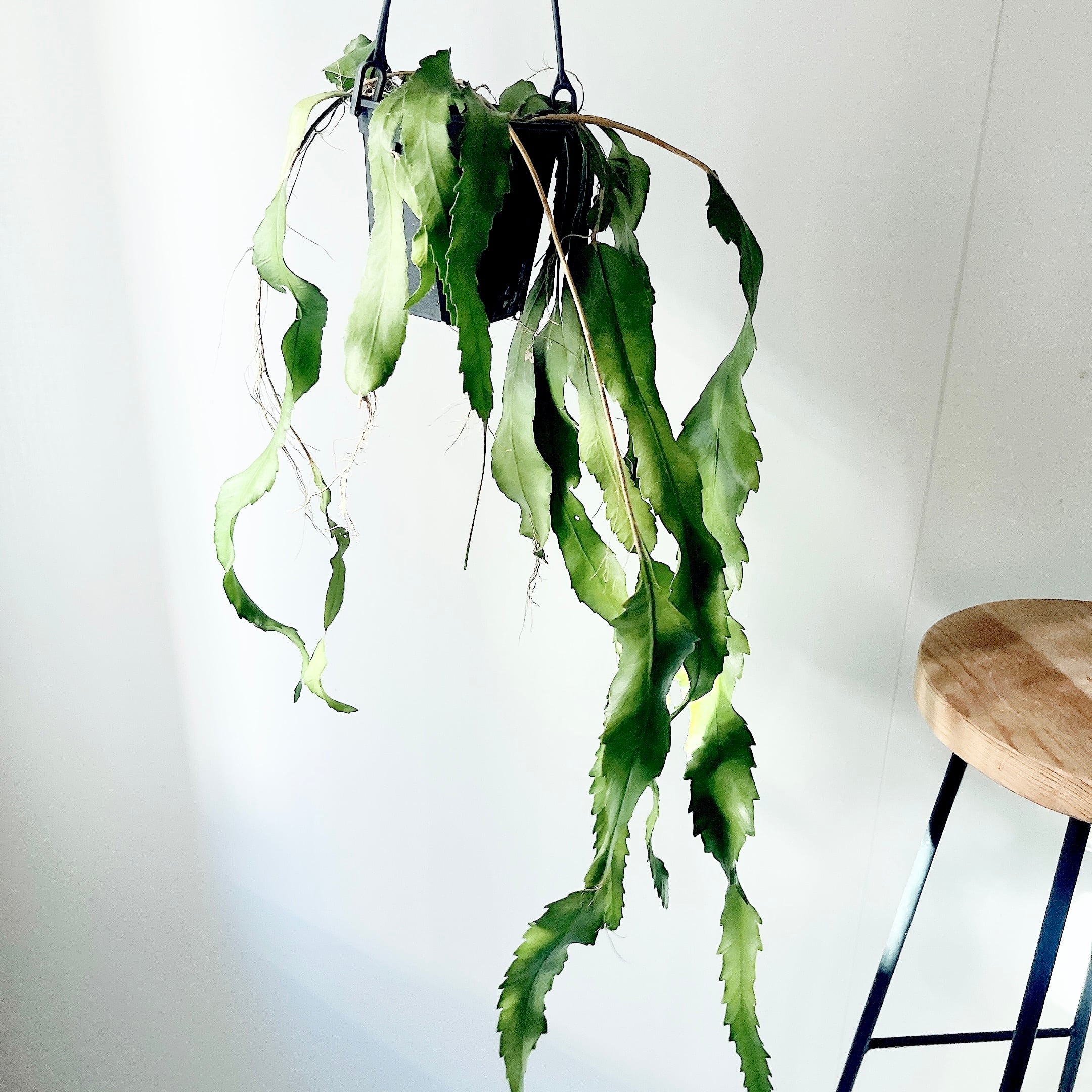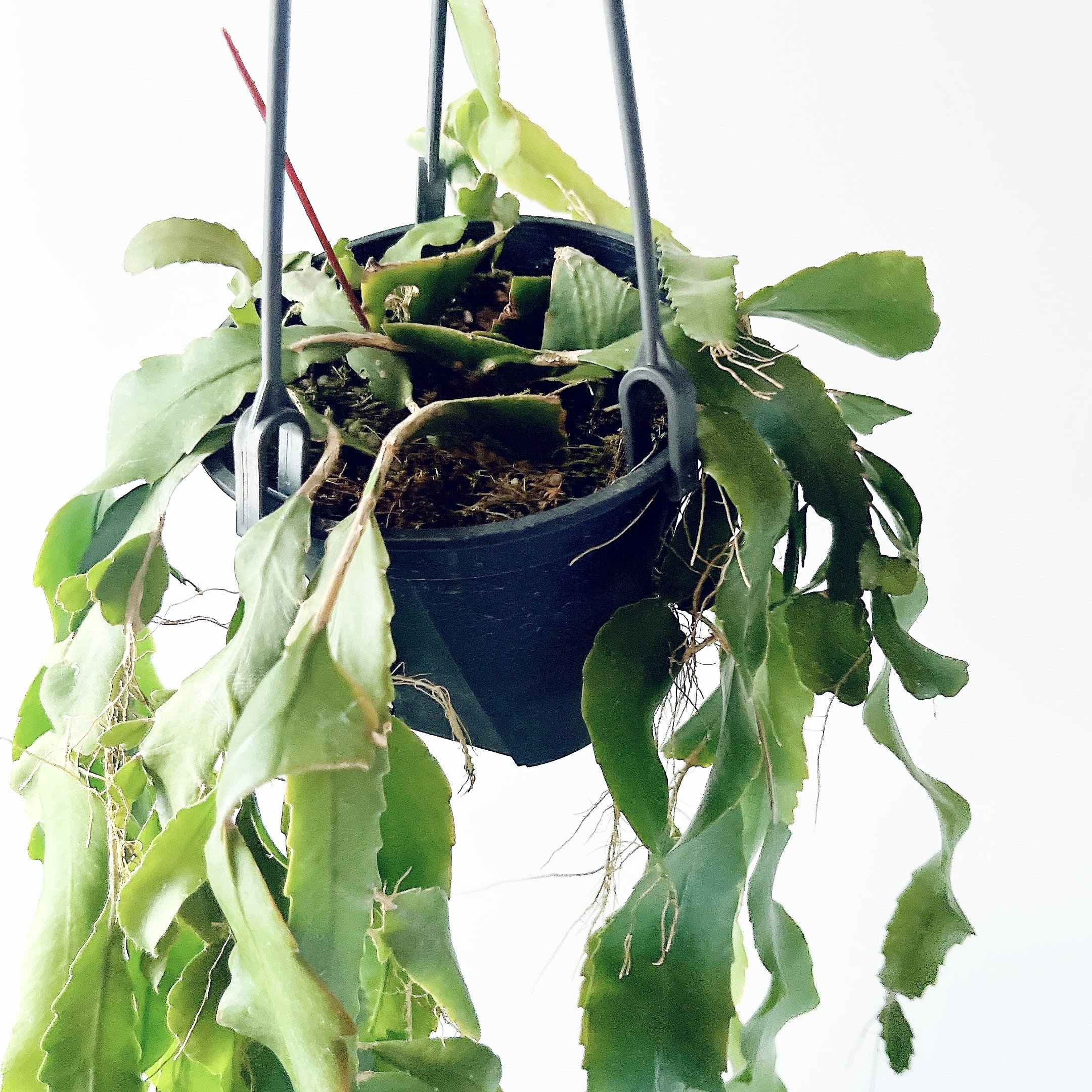 広く平たい葉と長く伸びた気根が魅力の森林性のサボテンです。流通量の少ない珍しい品種になります。ロングサイズで存在感抜群です。