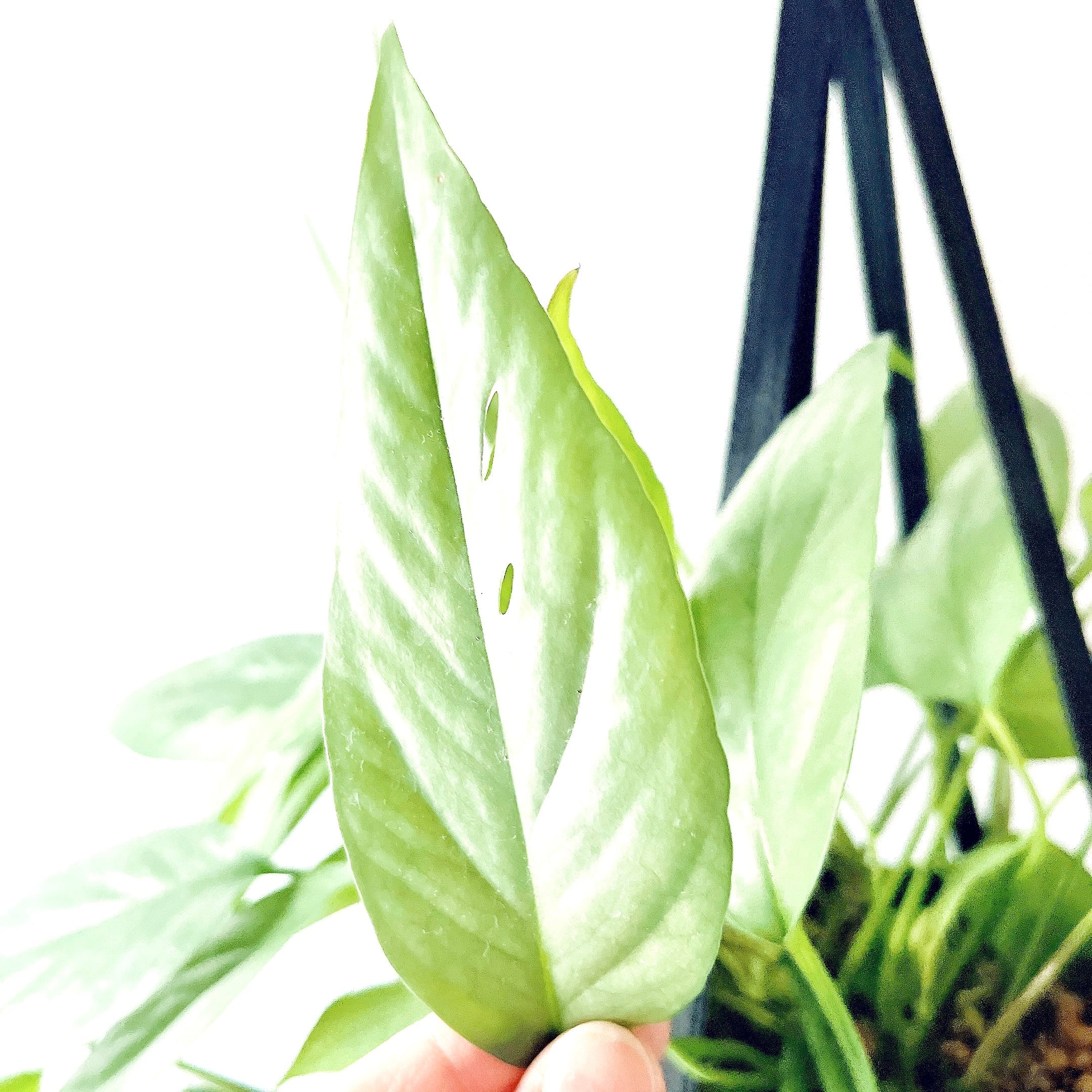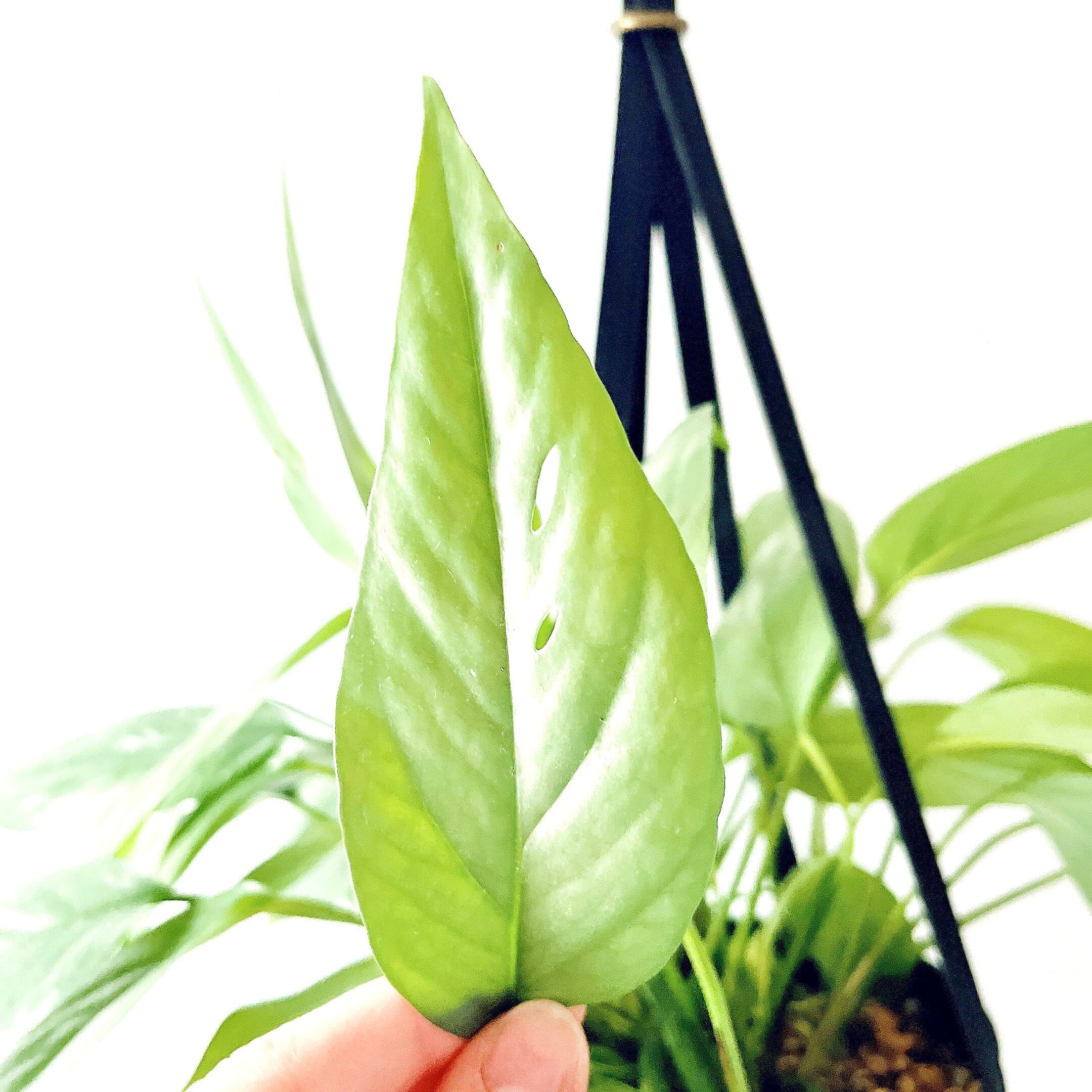メタリックなシルバーブルーの葉に穴のあく、モンステラの仲間、エピプレムナムの人気品種セブブルー。