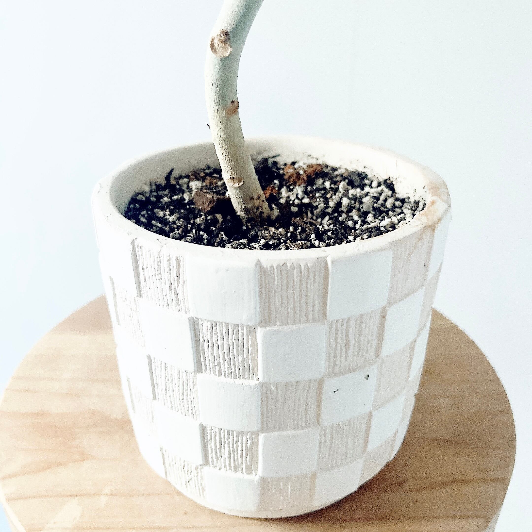 やわらかなフォルムが印象的なヨーロピアンタイル調の陶器鉢。ナチュラルで上品な色合いが植物の美しさを引き立て、